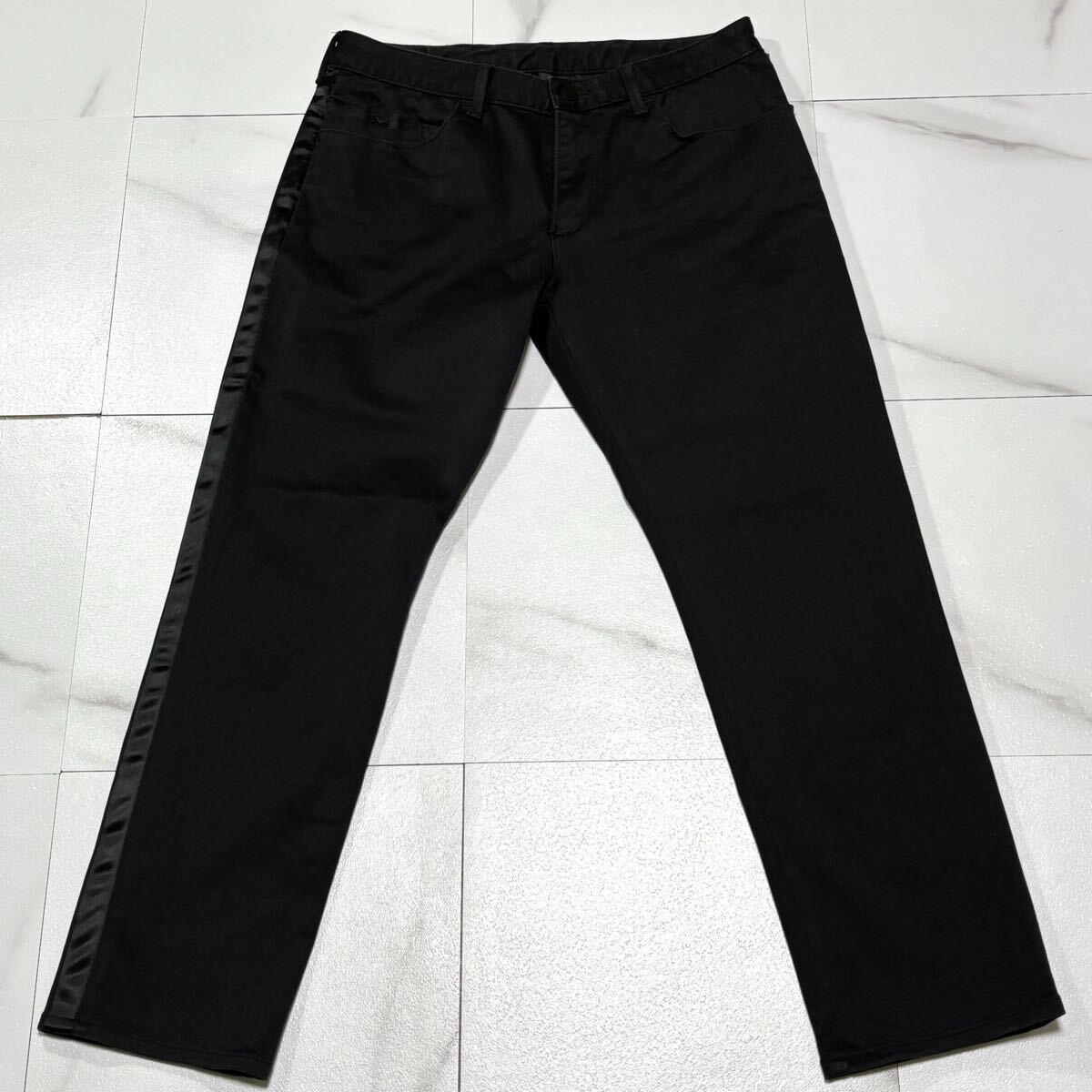極美品/ Lサイズ EMPORIO ARMANI エンポリオ アルマーニ パンツ イーグルロゴ 刻印 ストレッチ ブラック 黒 W32