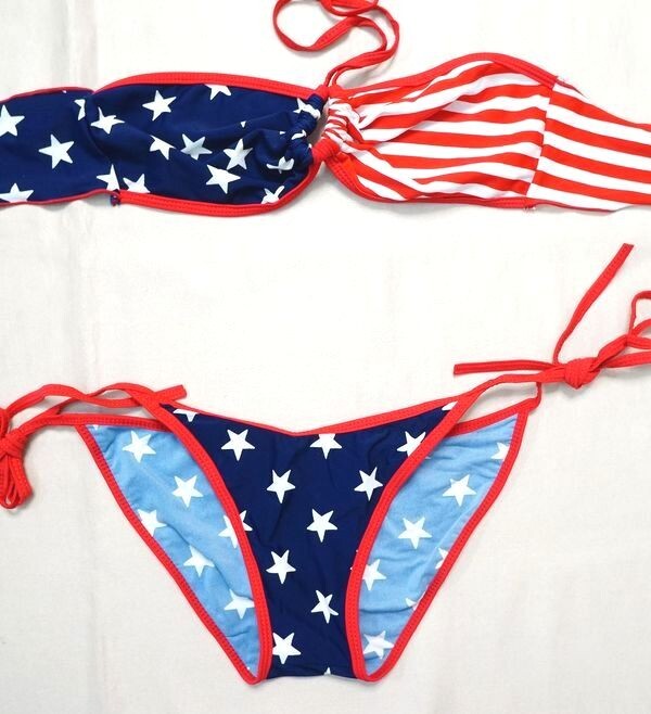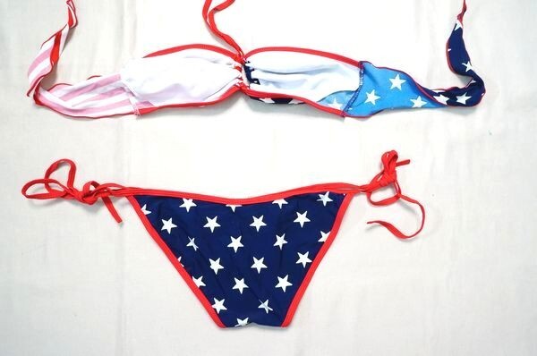 ★ローライズ紐ビキニ水着/チューブトップ/スポーツビキニ水着/コスプレ水着/アメリカン星条旗柄