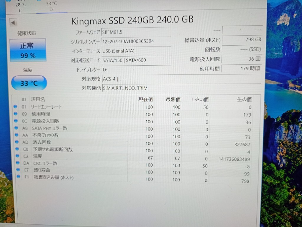 ■ SSD ■ 240GB (179時間) KINGMAX 正常判定 送料無料