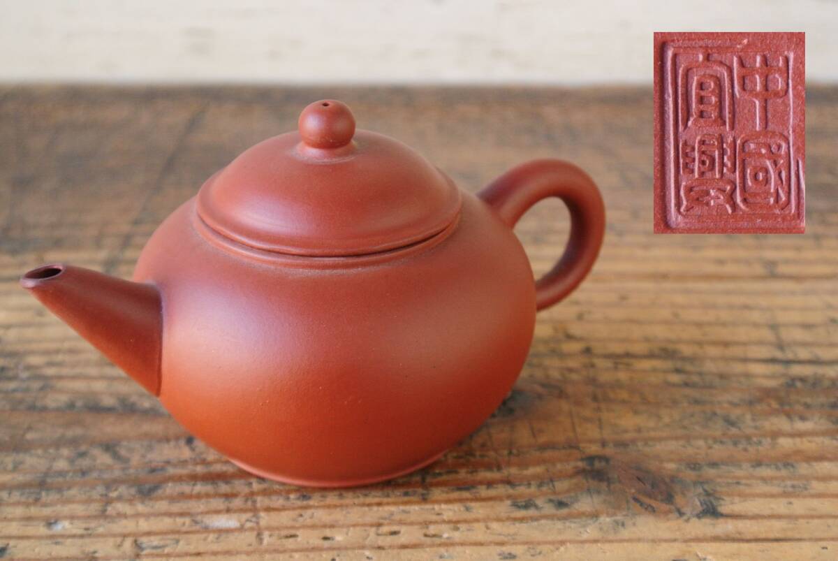 中国美術 中國宣興 朱泥後手急須 紫砂壷 多孔口 水注 煎茶道具 No.1