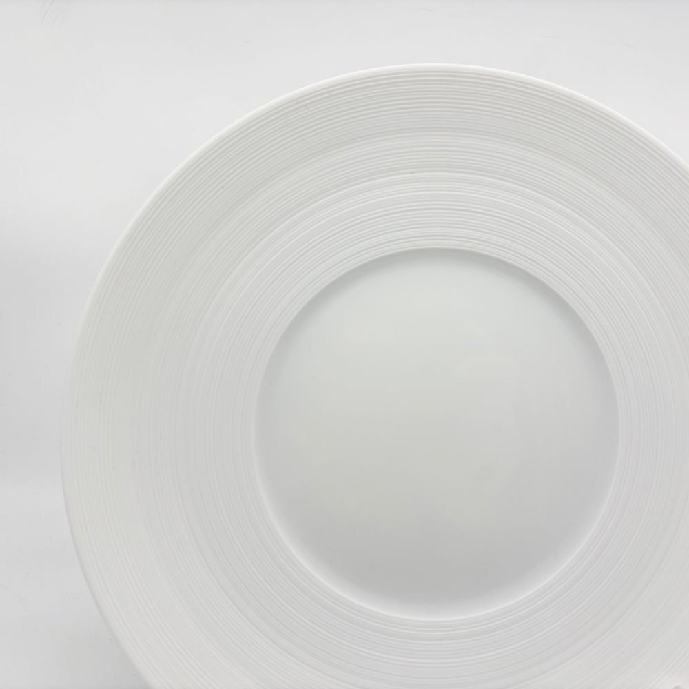 艶のあるプレート中央と対照的にその周りはマットな質感で仕上げられ、凹凸のある表面は、白さ引き立つ美しい陰影を生み出しています。