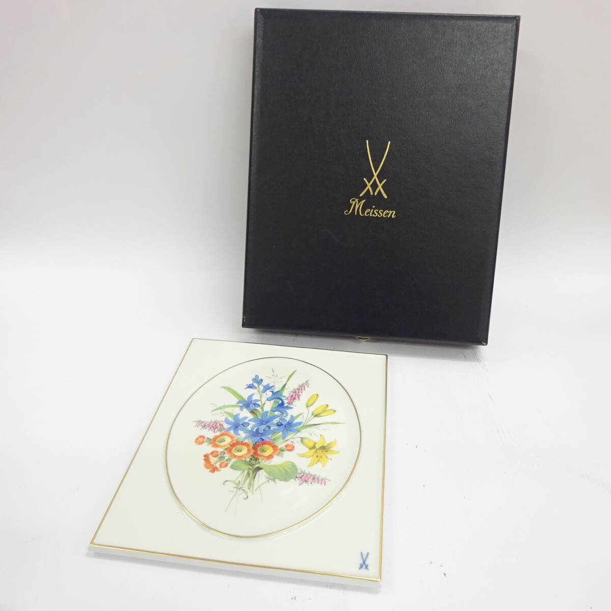 マイセン フラワー 花 双剣 プラーク 陶板 箱付き 置物 インテリア 装飾品 オブジェ 小物 コレクション 80サイズ発送 K-4222761-19-mrrz2