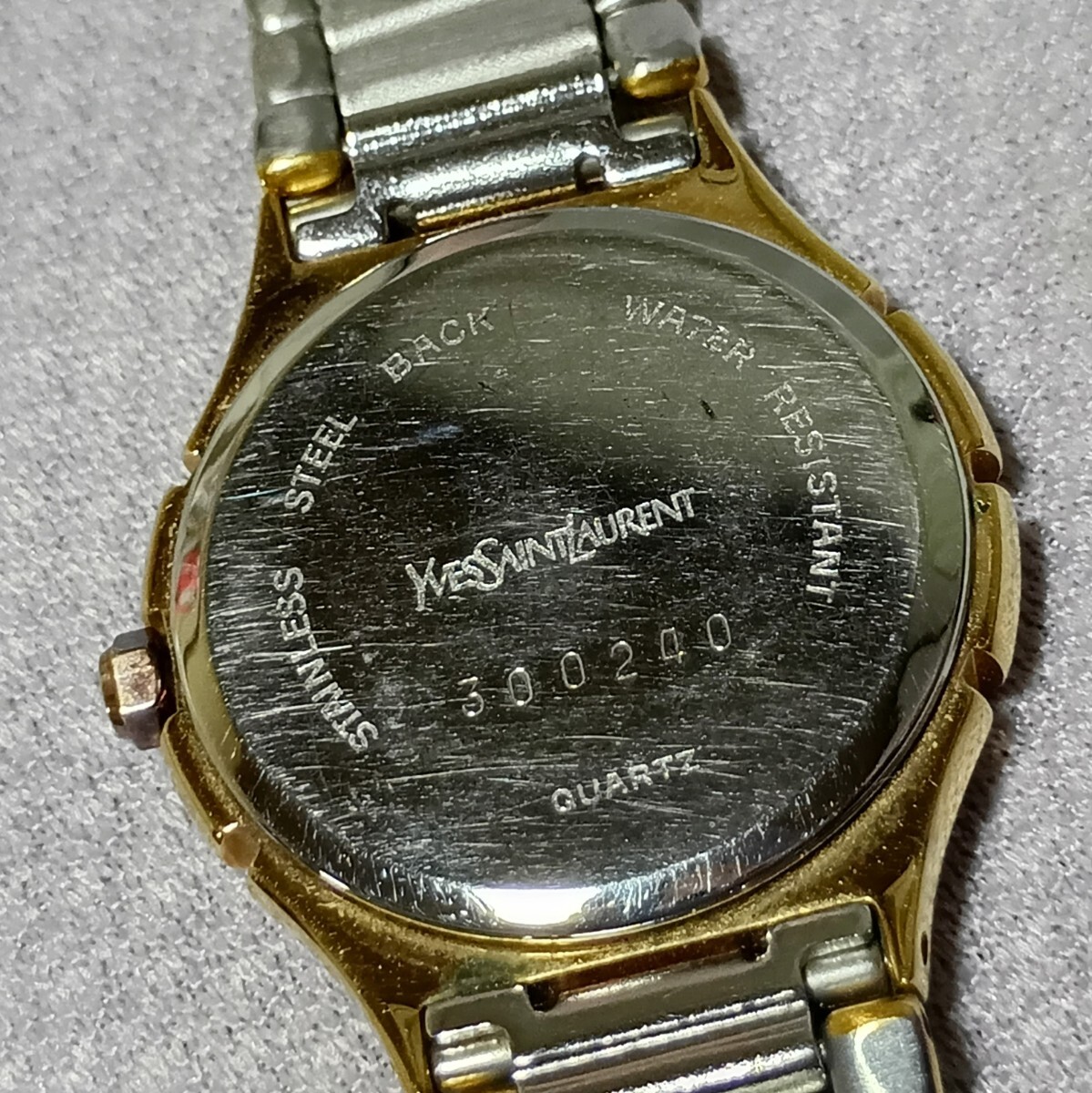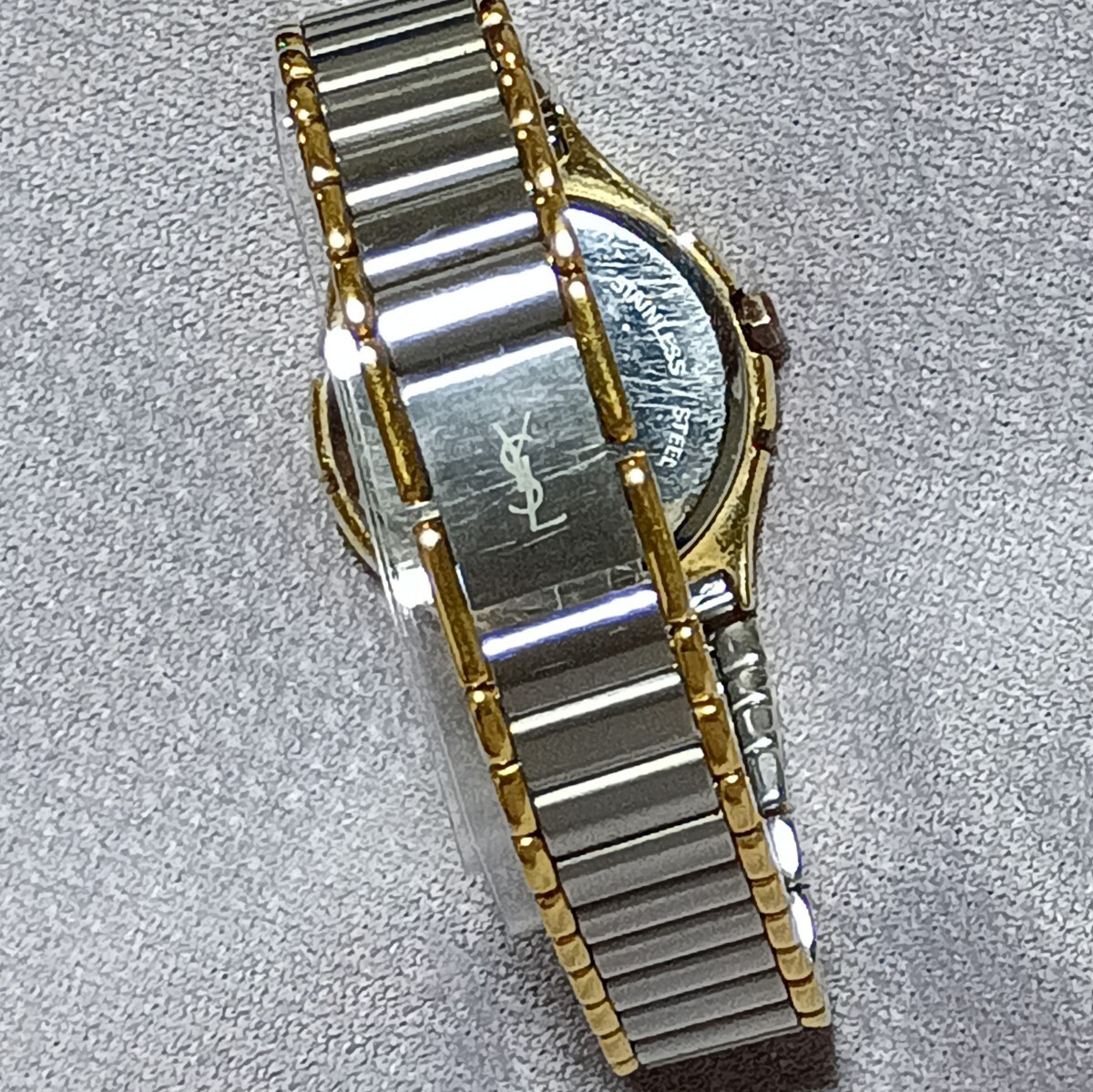 ★Yves Saint Laurent/イヴサンローラン★レディース.クオーツ.腕時計★シルバー/ゴールドカラー・リューズ/針動作確認【電池切れ/未確認】