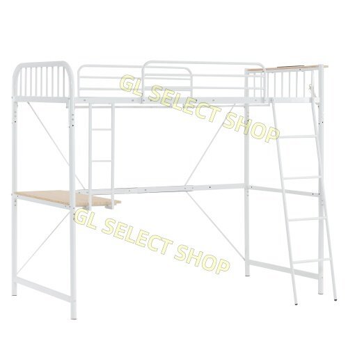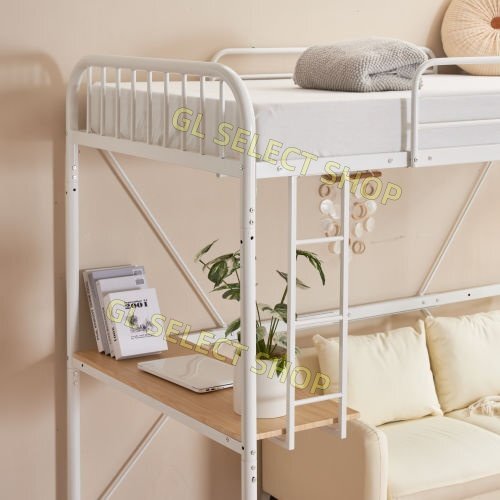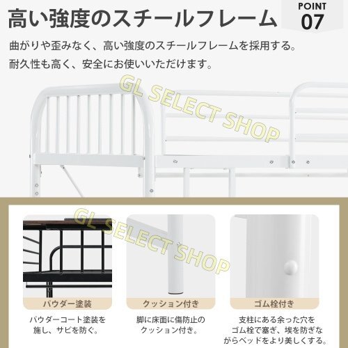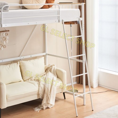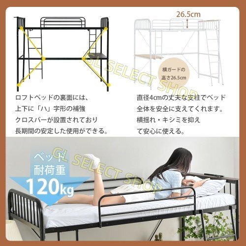 Product name: システムベット ロフトベッド シングル コンセント付き デスク付き 耐荷重120kg 高さ170cm 北欧風 大人ベッド スチール 耐震 【白】