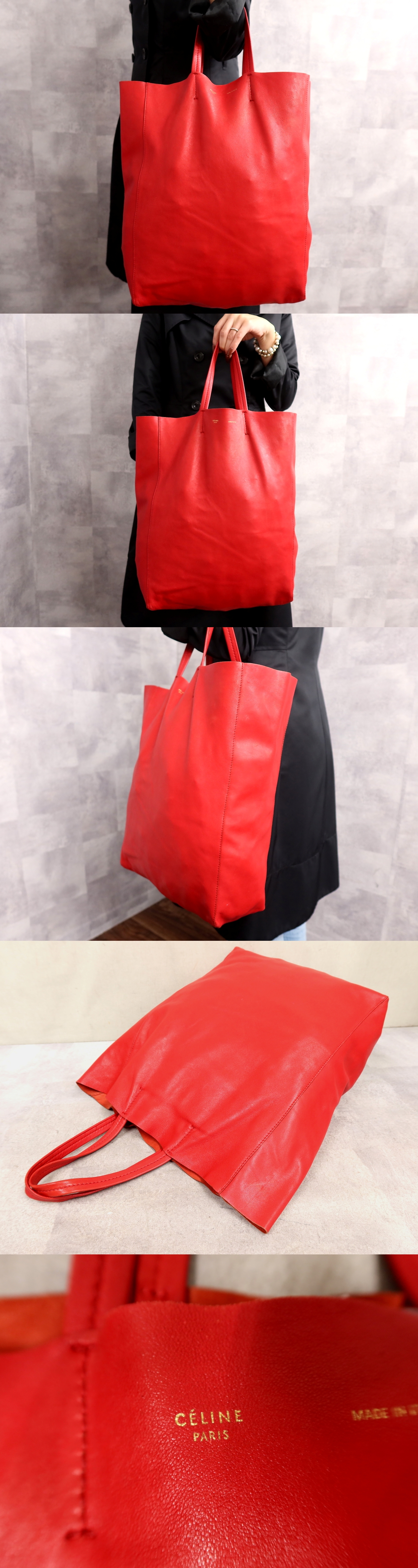 Product name: ●超美品●CELINE セリーヌ●バーティカルカバ●カーフ レザー 本革●トート バッグ●赤●腕掛け●A4 書類 収納 かばん●Js64112