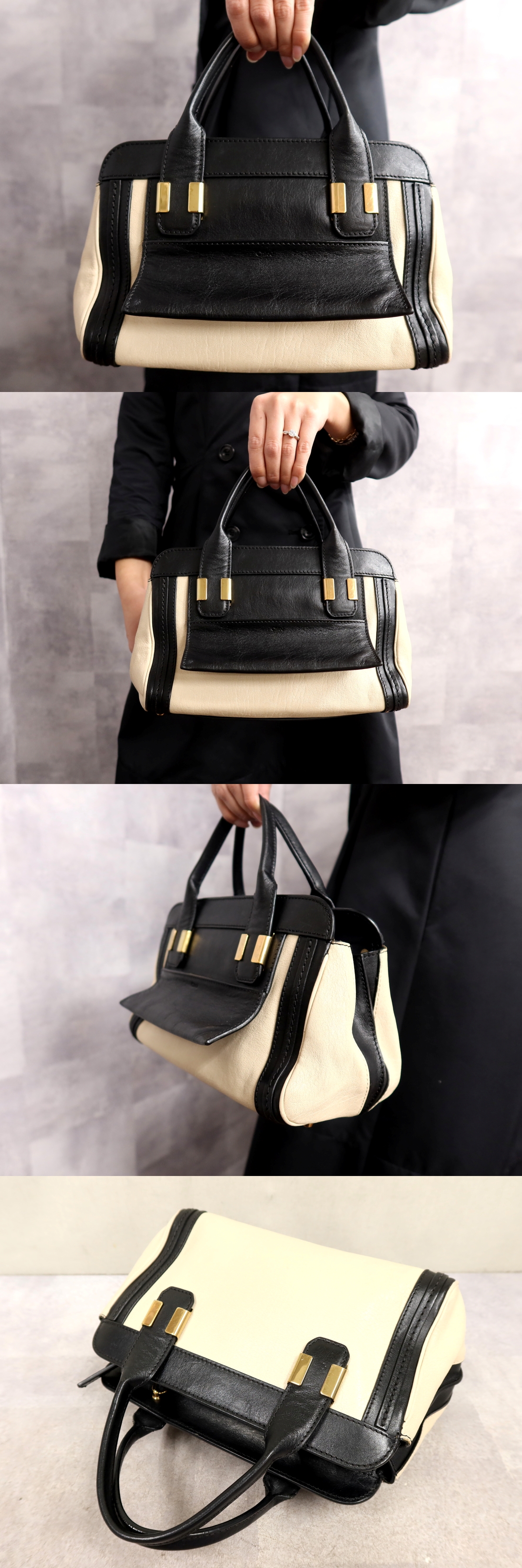 Product name: ●超美品●Chloe クロエ●アリス●バイカラー●カーフ レザー 本革●ハンド バッグ●黒 ベージュ●ゴールド金具●腕掛け●かばん●Js64331