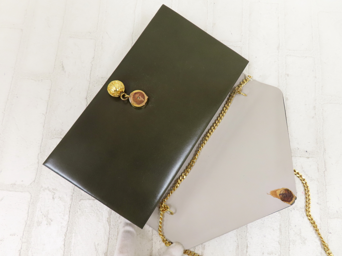 Store ◆Christian Dior クリスチャン・ディオール◆カーフ レザー 本革◆チェーン ショルダー バッグ◆カーキ ゴールド金具◆フラップ◆A15225