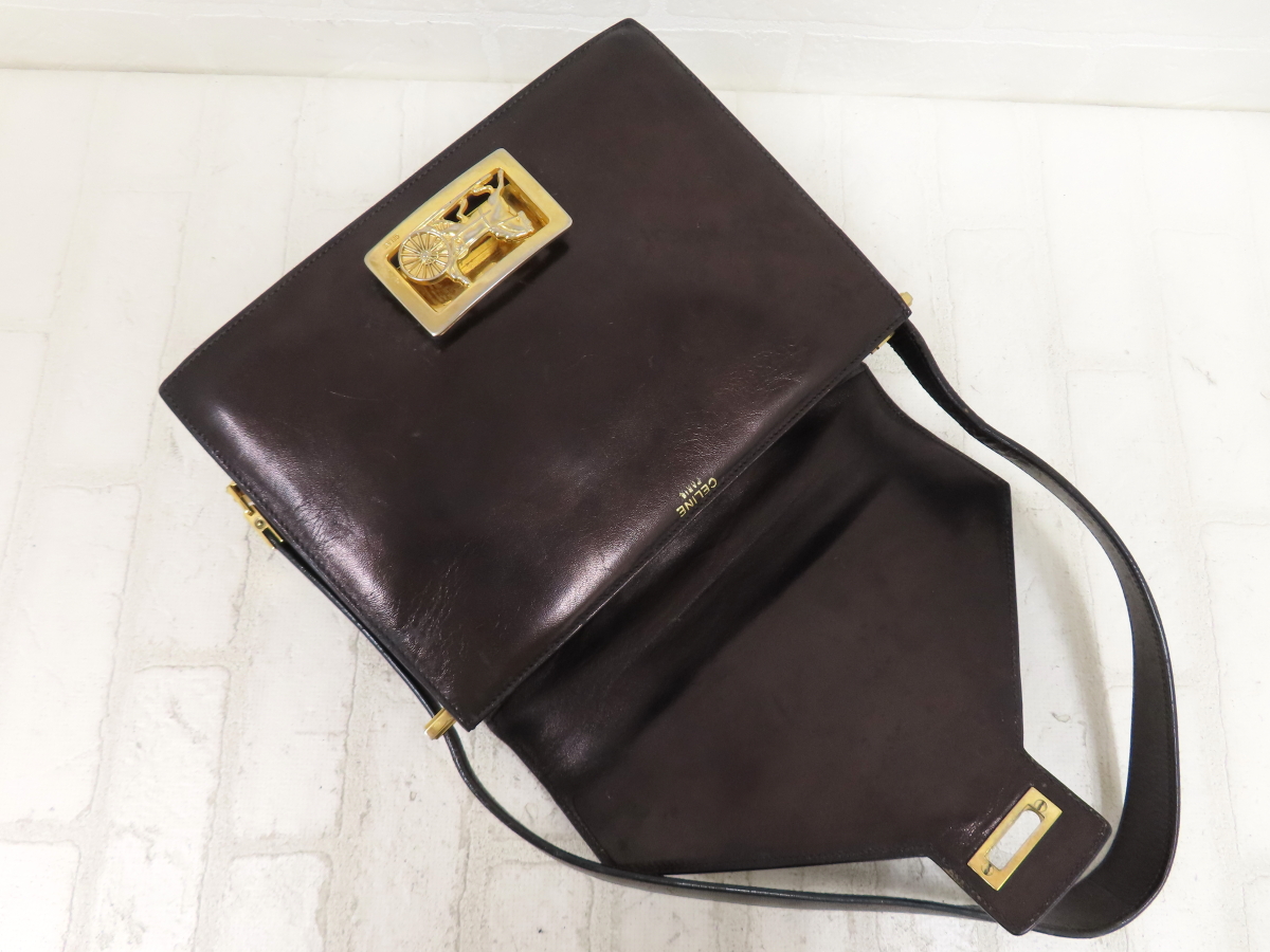 Store ◆美品◆CELINE セリーヌ◆カーフ レザー 本革◆ワン ショルダー バッグ◆ブロンズメタリックブラック ゴールド金具◆ヴィンテージ◆A15600