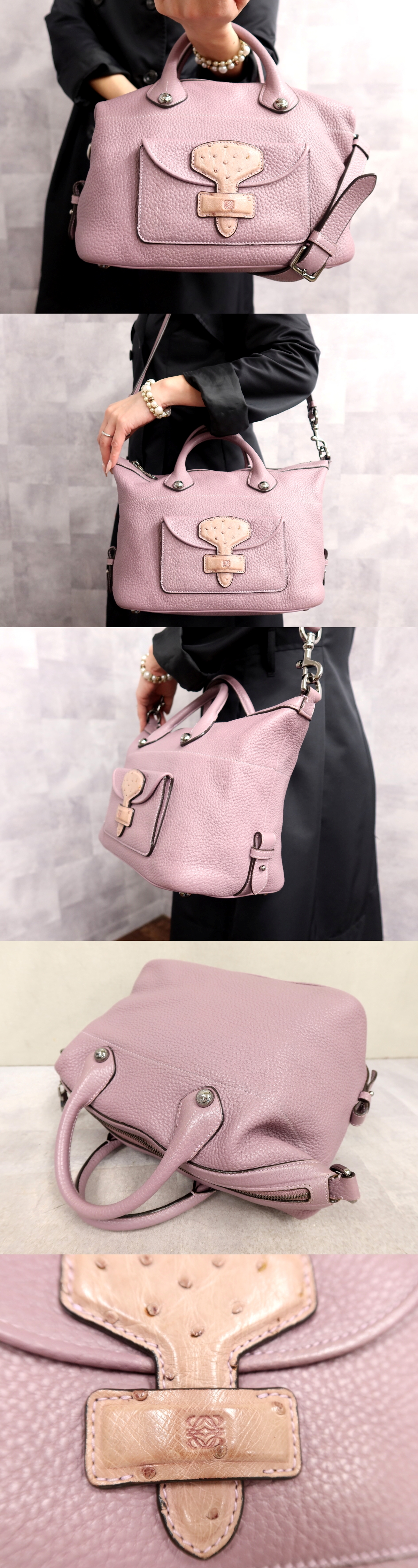 Store ●超美品●ロエベ●メイ●アナグラム●オーストリッチ 本 ダチョウ 革 カーフ レザー 本革●2way ハンド バッグ●ライラック●B5●Js65280