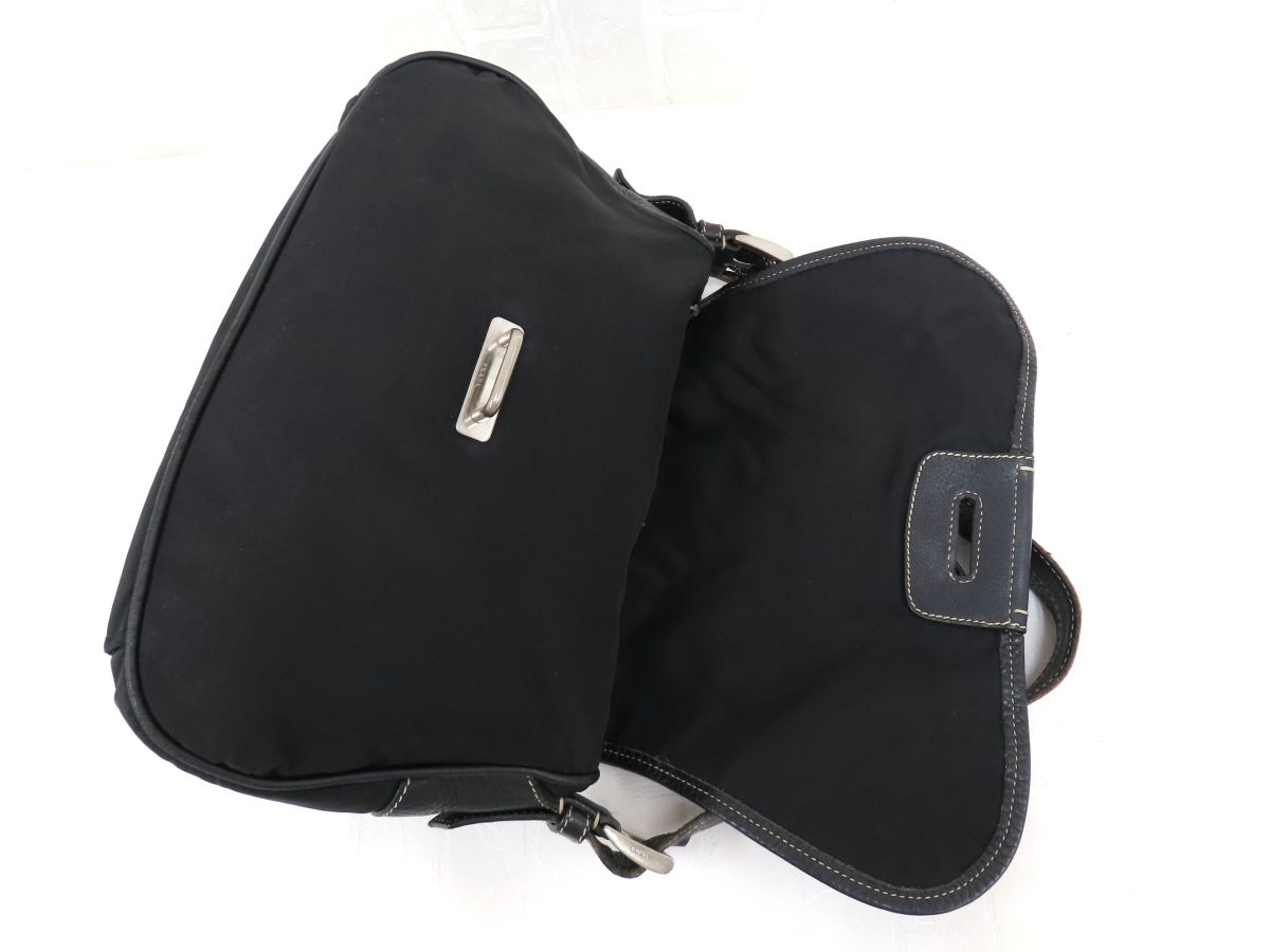 Store ◆超美品◆PRADA プラダ◆ナイロン カーフ レザー 本革◆ワン ショルダー バッグ◆ブラック SV金具◆イタリア製◆ヴィンテージ◆A16489