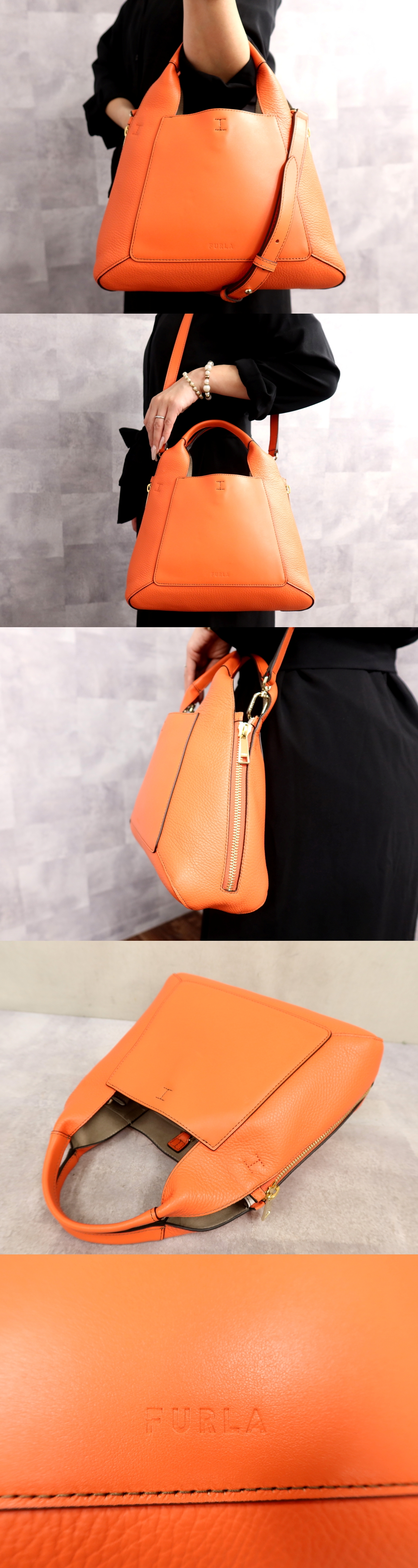 Product name: 超美品●FURLA フルラ●ジルダ●ロゴ型押し●カーフ レザー 本革●2way ハンド バッグ●オレンジ●ゴールド金具●腕掛け●かばん●Js67369