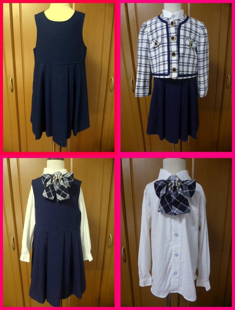 送料無料★フォーマルスーツ3点セット120cm ネイビー ジャケット/ワンピース/ブラウスany FAM他 入学式/発表会/卒業式/結婚式披露宴