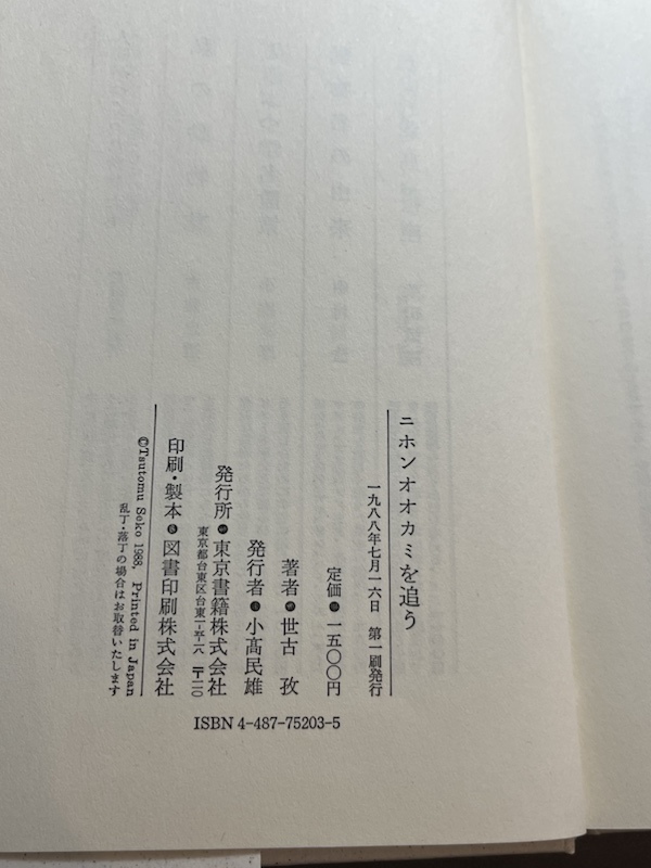 Product name: 「ニホンオオカミを追う」 世古孜  1988年初版