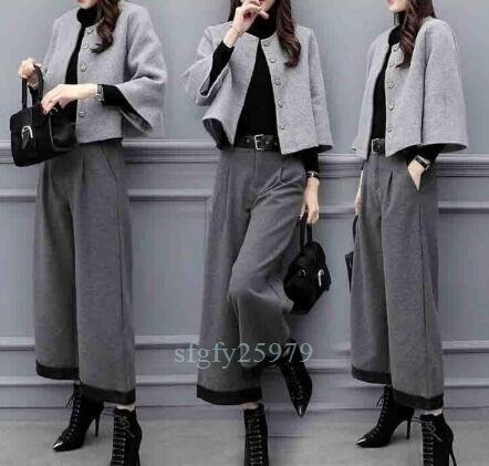 B476☆ パンツスーツ セットアップ パンツセット ゆったり レディース 上下2点セット 通勤 秋冬 厚手 Lサイズ