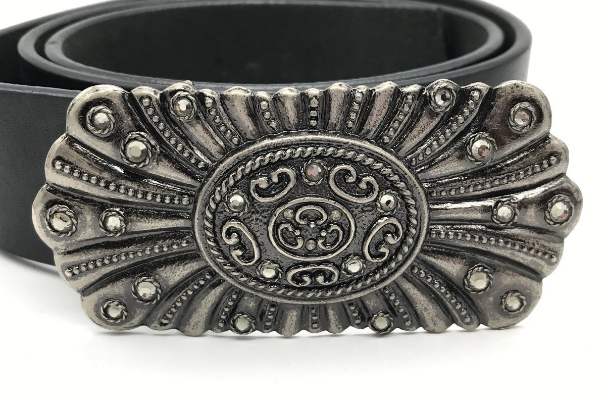 素材 【本革 レザー】 【黒×バックル シルバー系】
