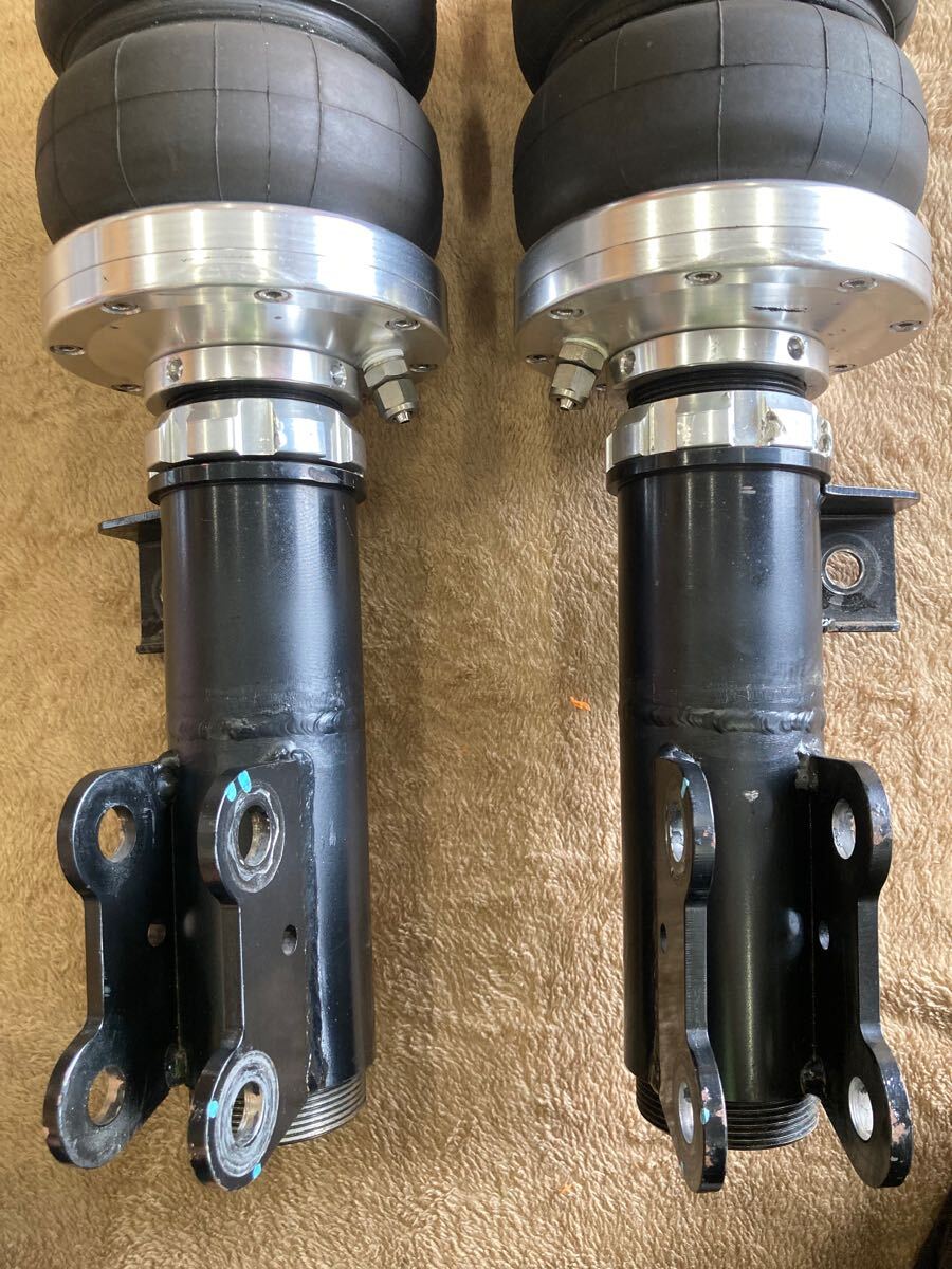 リヤは車高が下がるようにワンオフのロールセンターアダプターを使用していました。エアバッグのブラケットは短縮加工しています。