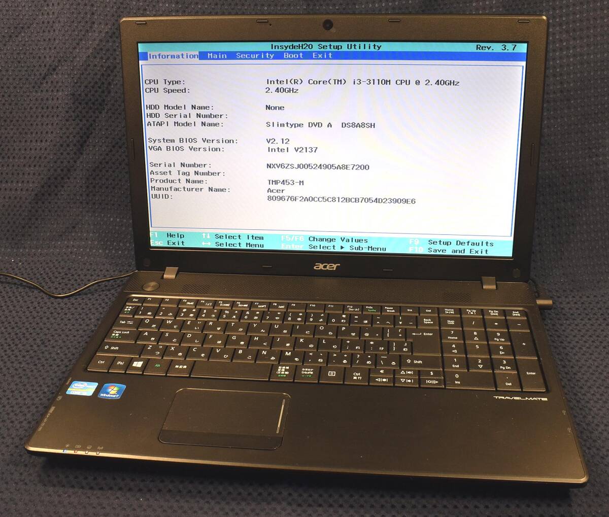 起動確認のみ(ジャンク扱い)acer TRAVELMATE P453 CPU:i3-3110M RAM:2G HDD:無し (管:KP583