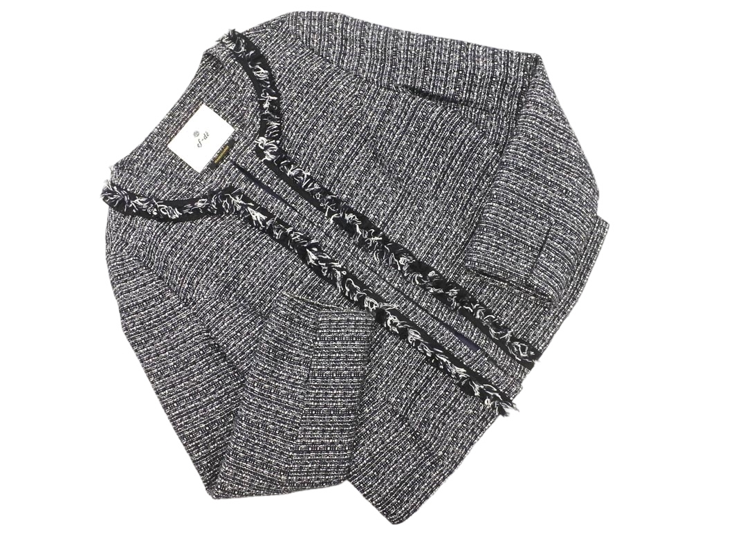 Product name: ef-de エフデ ツイード フリンジ ノーカラー ジャケット size11/紺 ◇■ ☆ fbb9 レディース