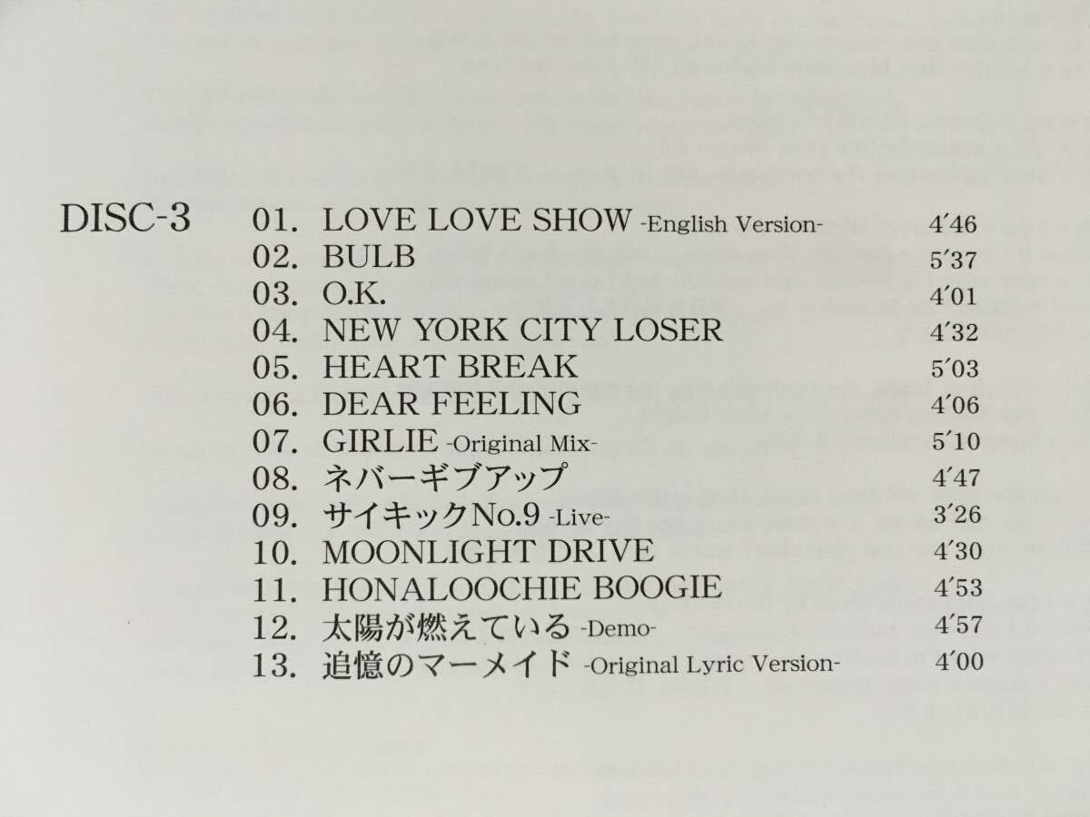 2004年リリース、、株式会社 BGMファンハウス販売品、BVCR-18040~42、3枚組、合計全40曲収録、販売当時価格:3800円(税抜き)、販売当時の別紙フォトブック、別紙ディスコグラフィー、専用スリーブケース付(画像では分かりにくいですが経年による多少の色焼け、若干の色褪せ、多少の擦れ、多少の傷、多少の汚れ、多少のエクボ(極小さな凹み)などのダメージがありますのでご理解ください。