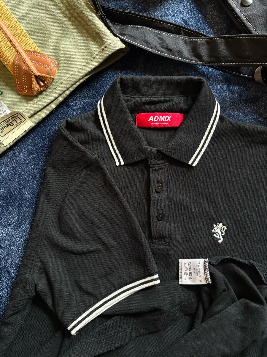 超美品 定価6,050円 ADMIX アトリエサブメン ATELIER SAB MEN 高品質鹿の子素材 綺麗めアイテム 半袖ポロシャツ ブラック系 size48(M)