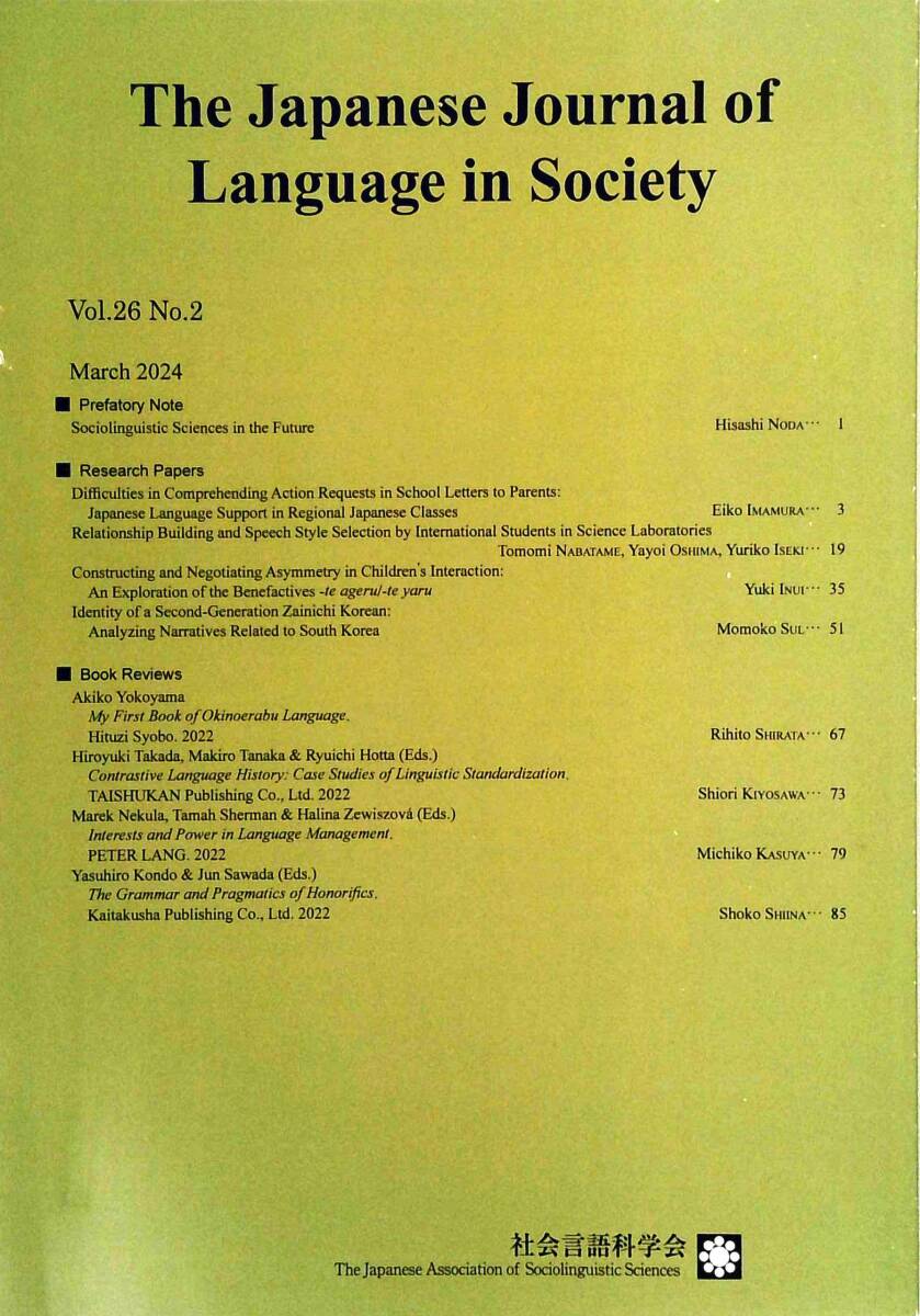 『社会言語科学』 26巻2号 2024年3月 The Japanese Journal of Language in Society Vol.26(2)