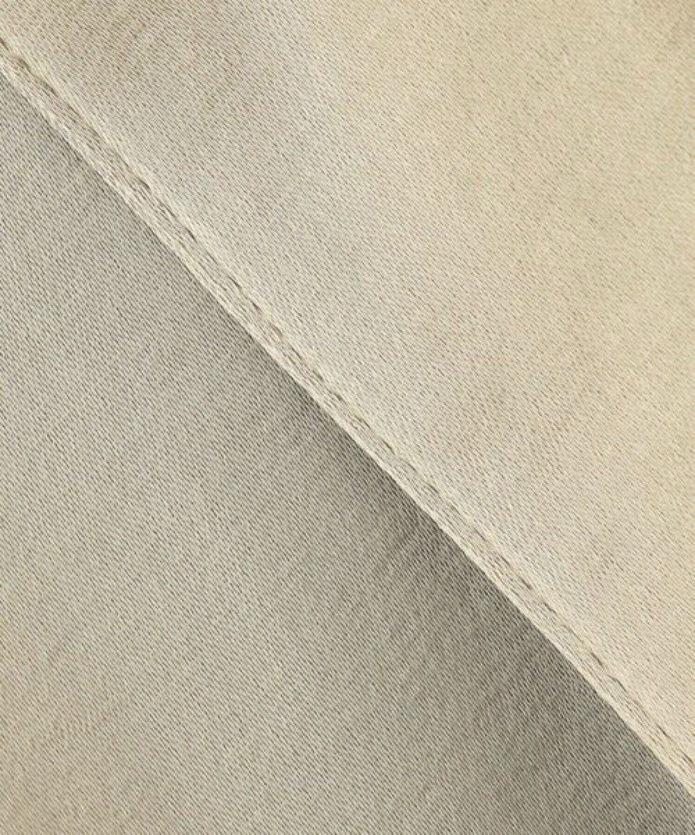 深みのある光沢とハリ・コシのあるタッチが特徴で、ポリエステルながらも独特な表情の素材です。ヨコ糸にレーヨンを使用しており、程よいウェイトと落ち感、しっとりとした表情も特徴です。