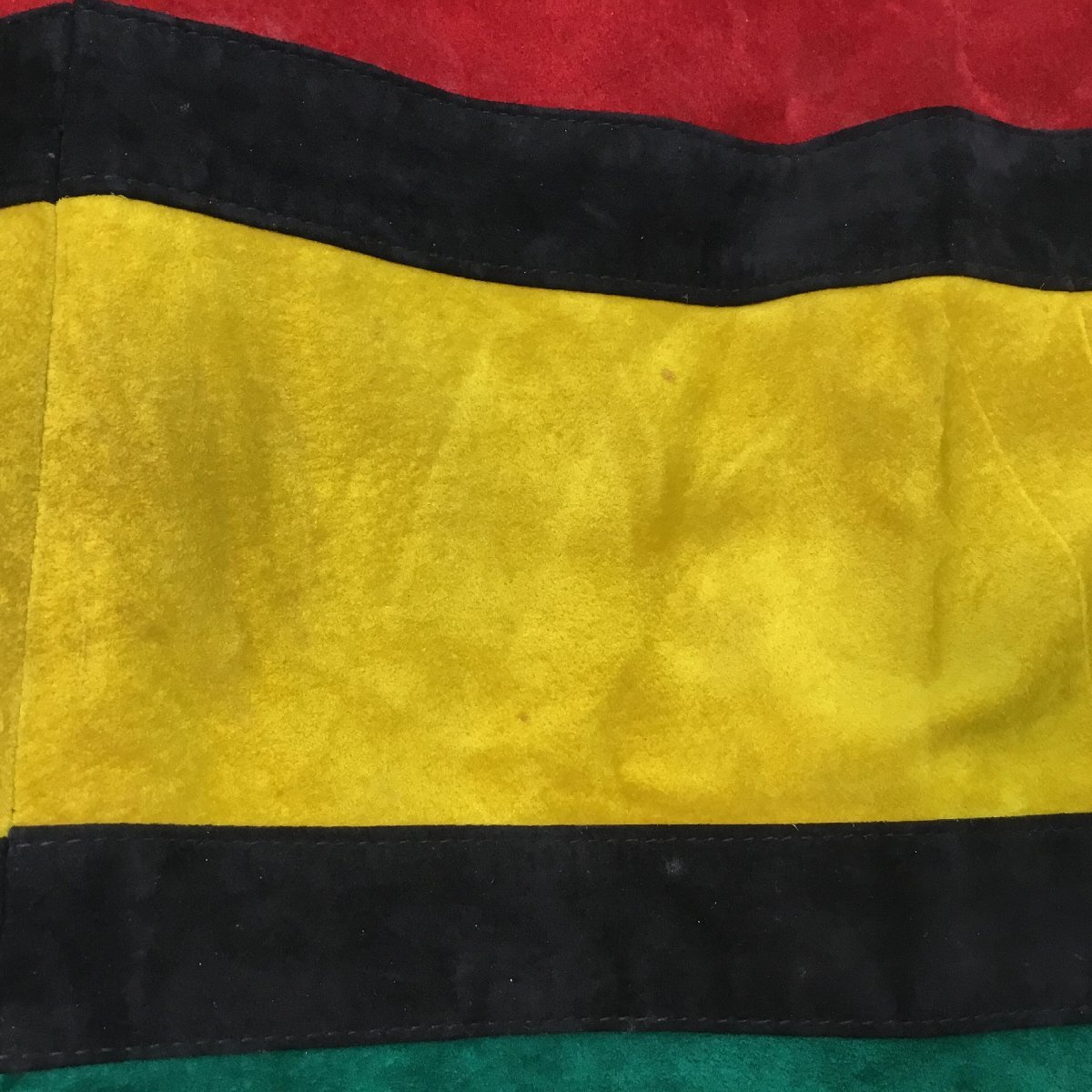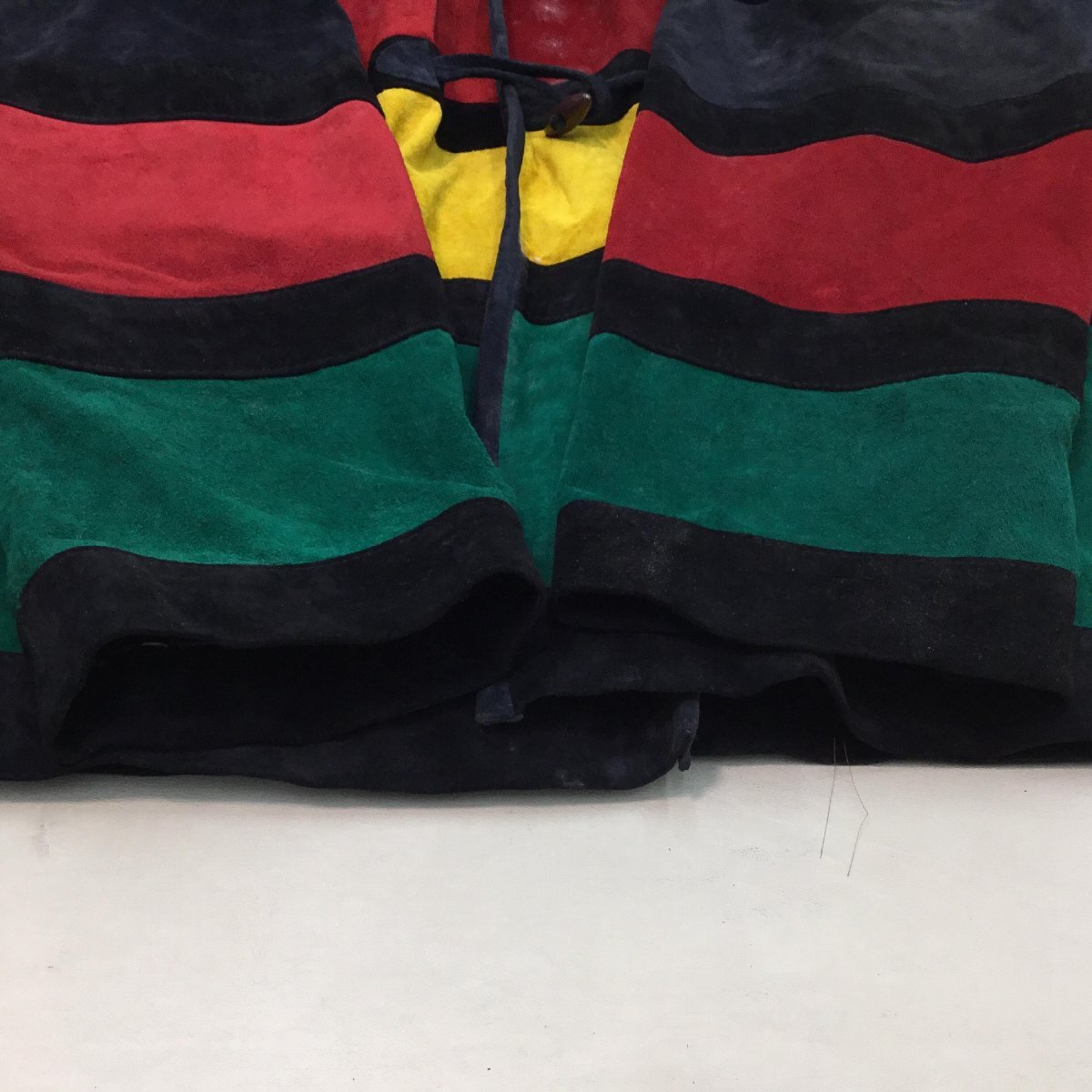 Product name: ■レザーダッフルコート スウェードレザーコート フード メンズ カラフル ボーダー 裏地総柄 ブランド不明 詳細不明 1.28kg