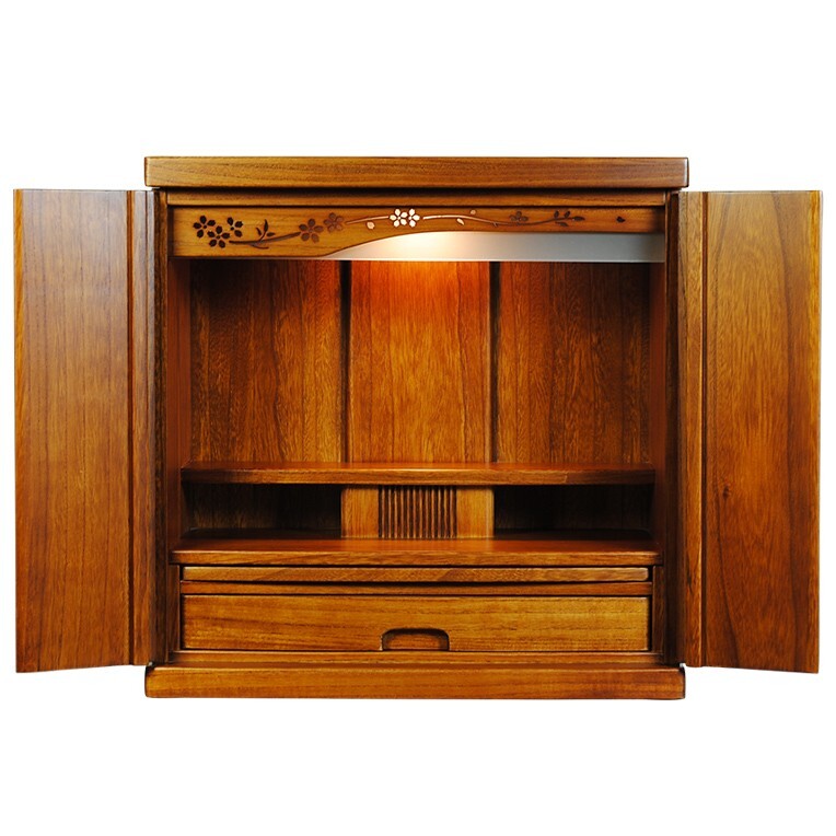 Product name: ミドルブラウン色・【ワイド型】LED照明付き・桜欄間・天然桐材・ミニ仏壇【新未来18号ワイド】・送料無料nmiraiwd