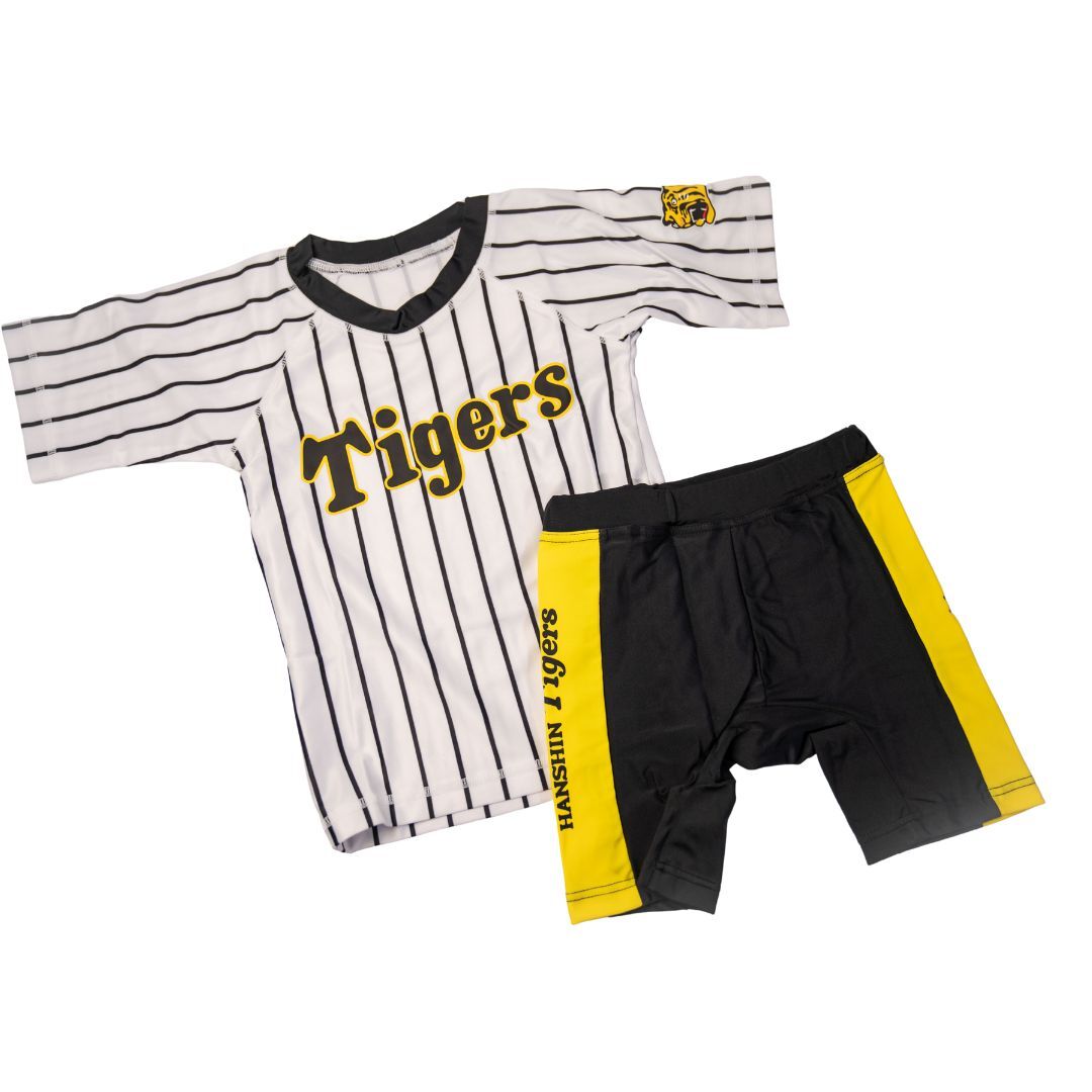 【35%オフ・値下げ】新品 阪神タイガース ラッシュスーツ 90cm ユニフォーム風 上下セット 虎ロゴ入り A