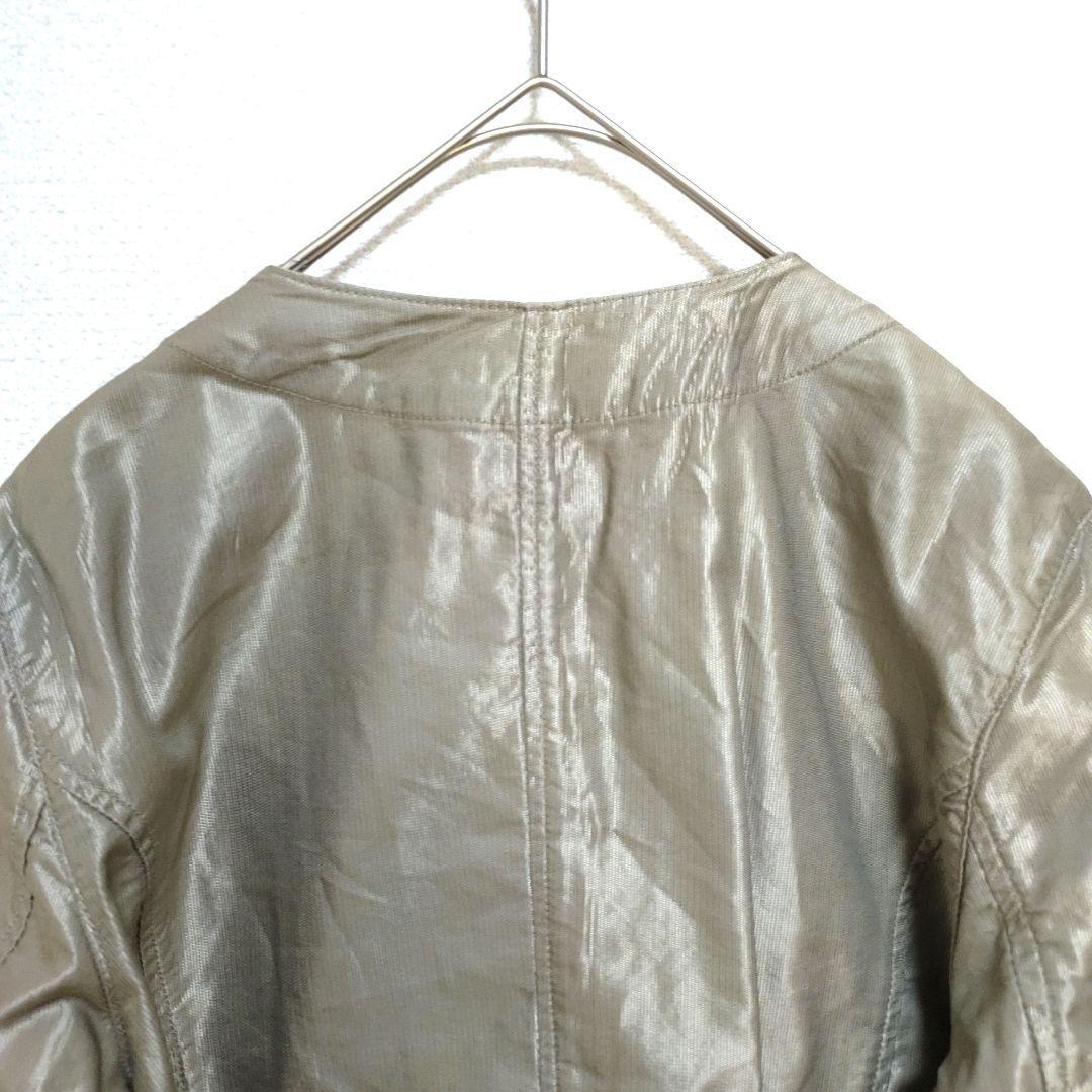 Product name: NATURAL BEAUTY BASIC ナチュラルビューティーベーシック ジャケット ノーカラー ライダース風 光沢感 銀 シルバー M