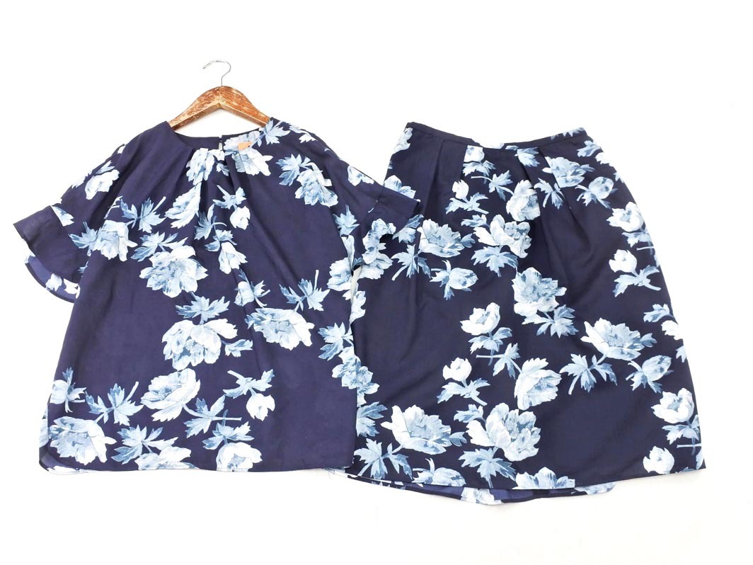 Product name: ネコポスOK SunaUna スーナウーナ 花柄 ブラウス スカート セットアップ size38/紺 ■◆ ☆ feb4 レディース