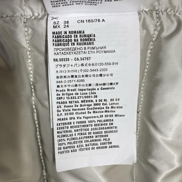 Product name: プラダ PRADA ダウンジャケット サイズ38 S 28B061 - ダウン カーキ レディース 長袖/ファー/冬 ジャケット