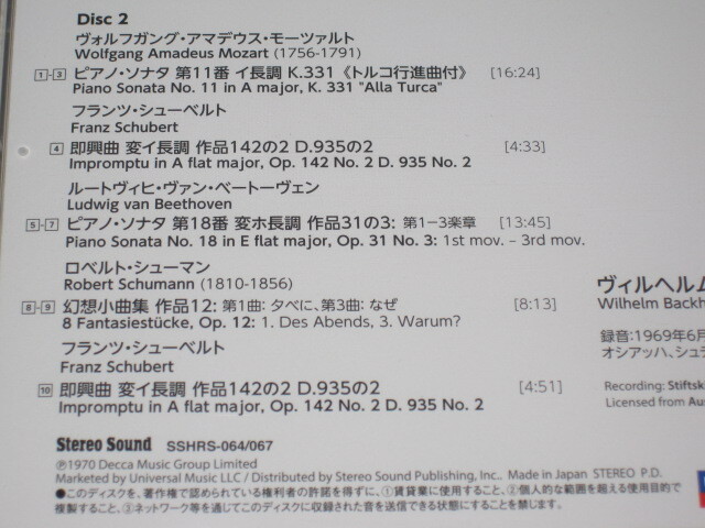Product name: Stereo Sound SACDシングル・レイヤー★ヴィルヘルム・バックハウス★最後の演奏会★4枚組(SACD+CD)