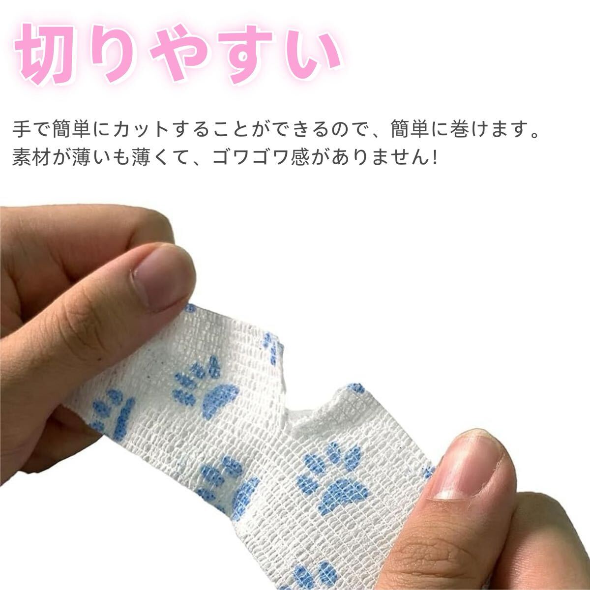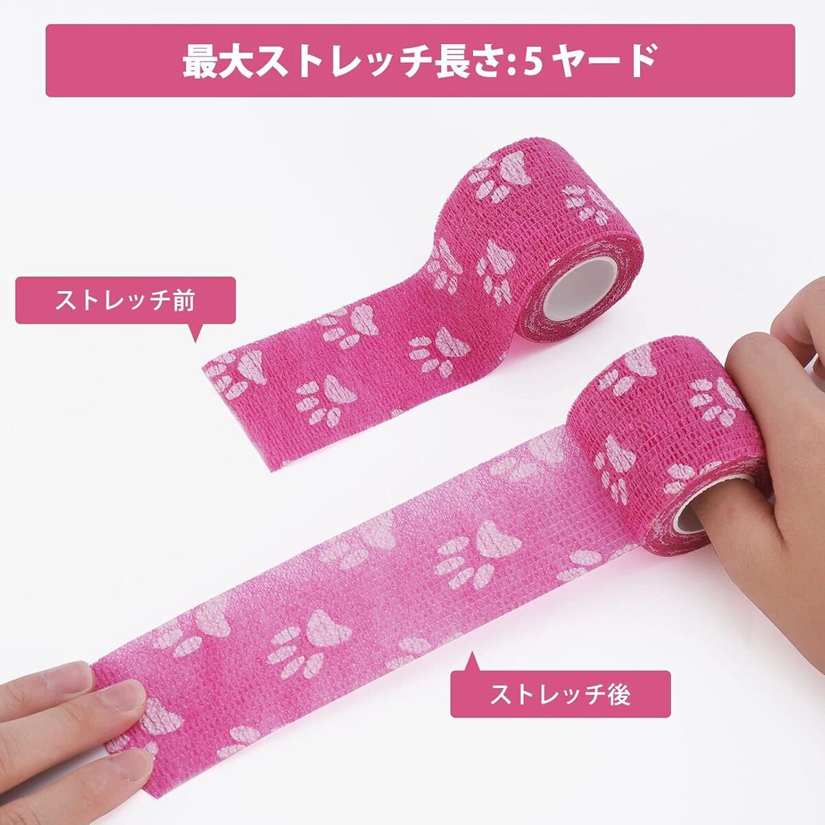 【自着性テープ】:自己粘着性の包帯は自分自身だけに付着し、皮膚や髪には付着しません。 あなたがそれを引き裂くとき、それは残留物と痛みを引き起こさず、あなたのペットの髪を傷つけません。