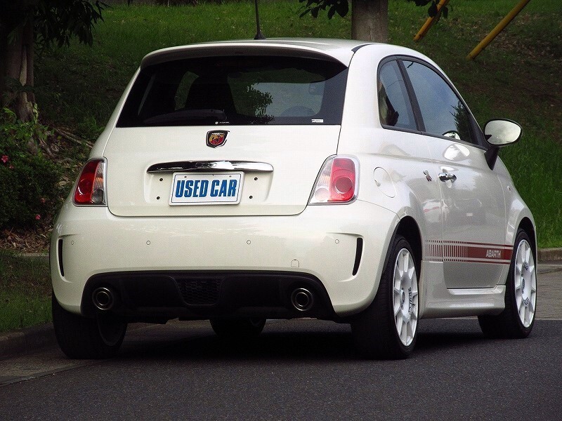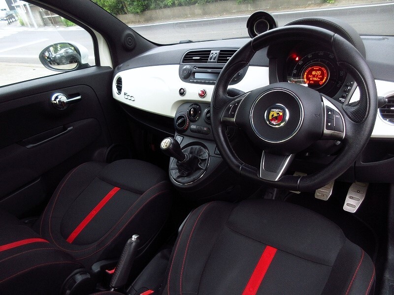 大人気アバルト500、5速マニュアル車の出品です♪今回の出品車両のウリは「純正ファブリック(布製)シート」です♪アバルト500と言えば殆どの車両はレザーシートですよね('◇')ゞ。レザーシートも高級感があって良いとは思いますが、アバルトに高級感を求めます??(;^ω^)?(笑笑)。どちらかと言えば・・・と言うより殆どのユーザーは「走り」重視なのではないでしょうか(^_^;)。中には「いつかはサーキットを走ってみたい」なんてツワモノもいるかも(#^.^#)、そんな本気(マジ)の走りを楽しみたい方にとってレザーシートのツルツル滑る感じはイヤですよねぇ~~(;^ω^)!しかも夏は熱くて、冬は冷たいし・・・(笑)。そんなあなたに乗って頂きたいのが今回の純正ファブリックシート装備の希少なアバルト君です(^_-)-☆♪25年12月登録なので500では最後の方の比較的新しめの個体になります♪もちろんプロジェクターキセノンランプも装備です♪現車は外装ほぼ無傷の極上コンディション♪内装も禁煙車両なのでとても綺麗です♪よくある助手席前ダッシュボードエアバッグのヒビや切れもございません(*^^*)♪機関もとても調子良く、運転しててとても楽しい1台です♪1時間以上のテスト走行も致しましたがエンジン、ミッション、エアコン共に快調でした♪そして車検もタップリ来年の12月まで付いてますので即乗り可能です♪さぁ!運よくこちらのオークションを御覧になったイタ車好きの貴方!今すぐウォッチリストにブチ込んじゃって下さい(*^▽^*)♪