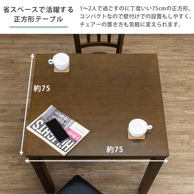 ダイニングテーブル 75cm 木製 正方形 角型 シンプル 作業台 デスクにも チェアは別売り VTM-75 ダークブラウン(DBR)