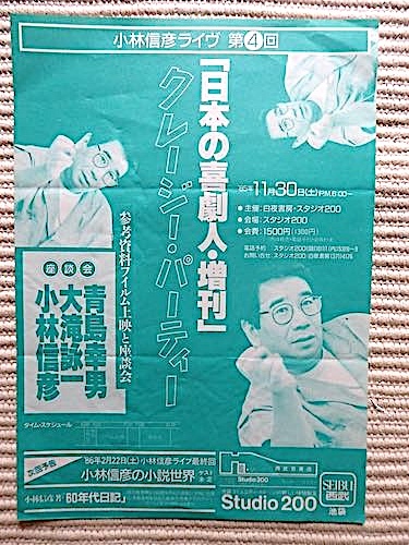 小林信彦チラシ3点★60年代日記の世界~雑誌編集術★日本の喜劇人・増刊★仮面の道化師★亀和田武、木滑良久、青島幸男、大瀧詠一