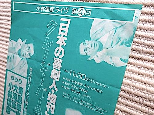 Product name: 小林信彦チラシ3点★60年代日記の世界~雑誌編集術★日本の喜劇人・増刊★仮面の道化師★亀和田武、木滑良久、青島幸男、大瀧詠一