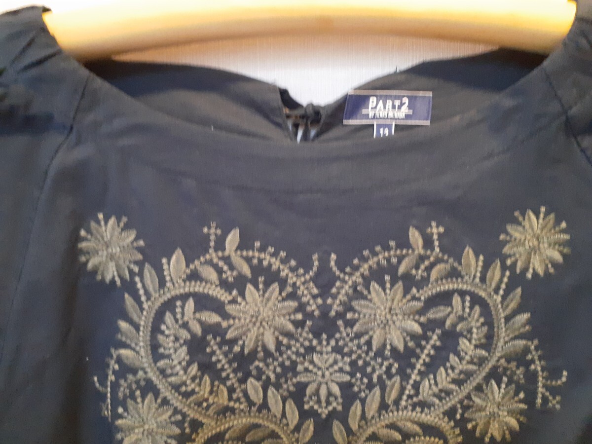 PART2 BY JUNKO SHIMADA ジュンコシマダ  チュニック ブラウス エンブロイダリー 刺繍 大きいサイズ 13号 濃紺五分袖