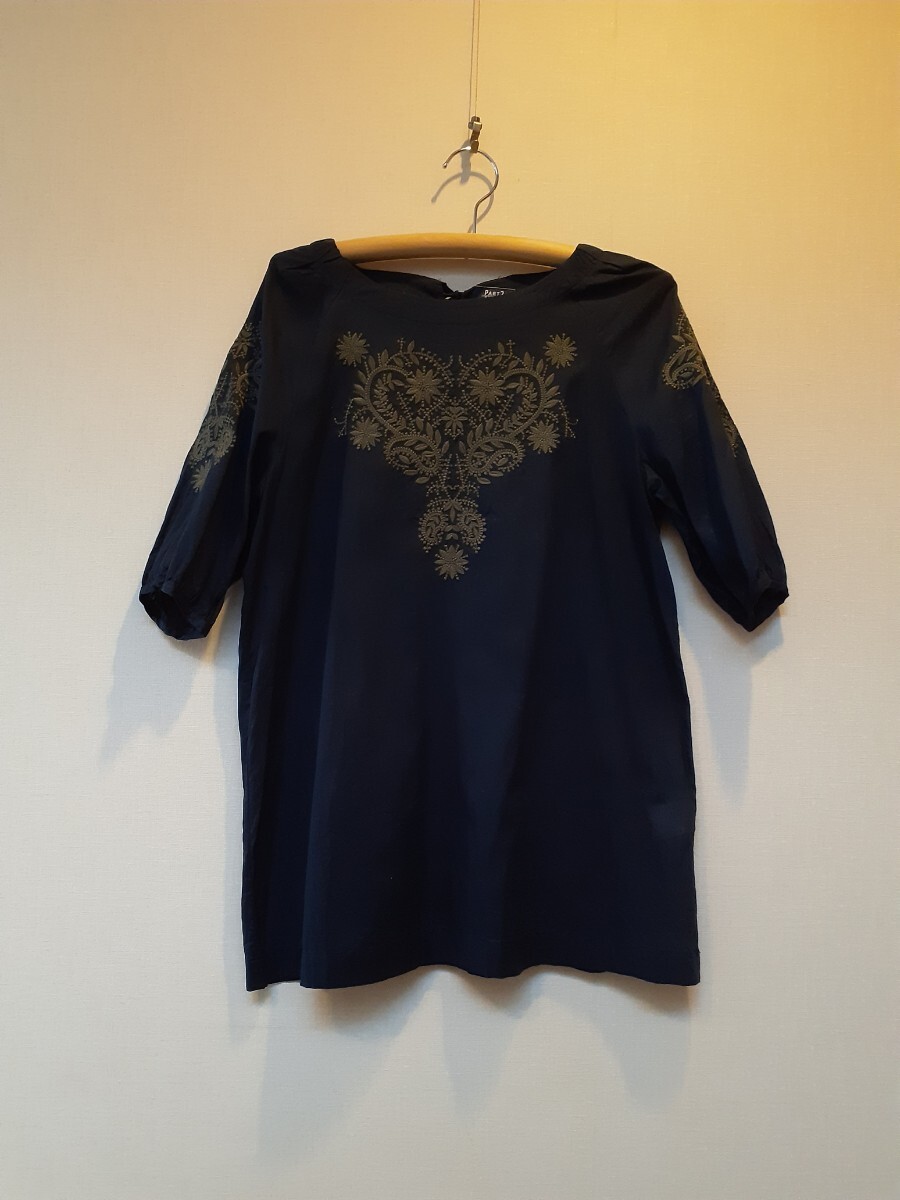 Product name: PART2 BY JUNKO SHIMADA ジュンコシマダ  チュニック ブラウス エンブロイダリー 刺繍 大きいサイズ 13号 濃紺五分袖