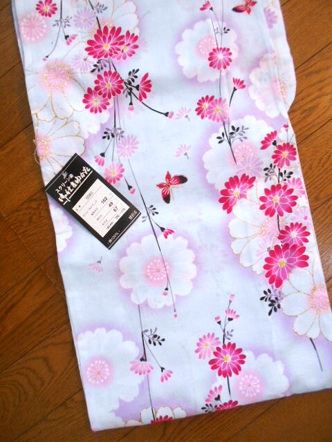 Product name: 御仕立てゆかた◆着物丈162(155-170cm)◆可憐なラメ付きお花x蝶々柄♪レディース浴衣 未使用品 夏祭り/花火大会♪