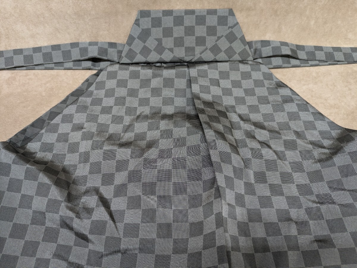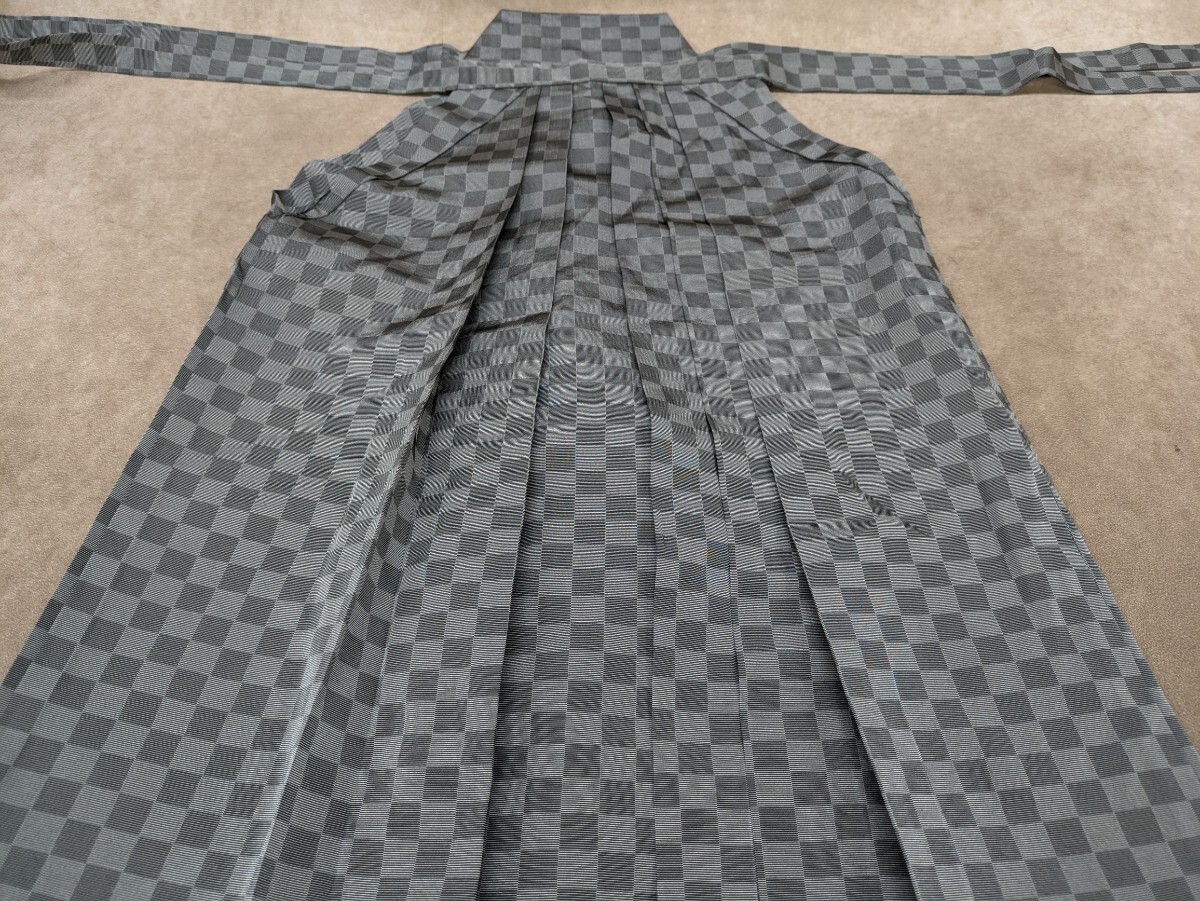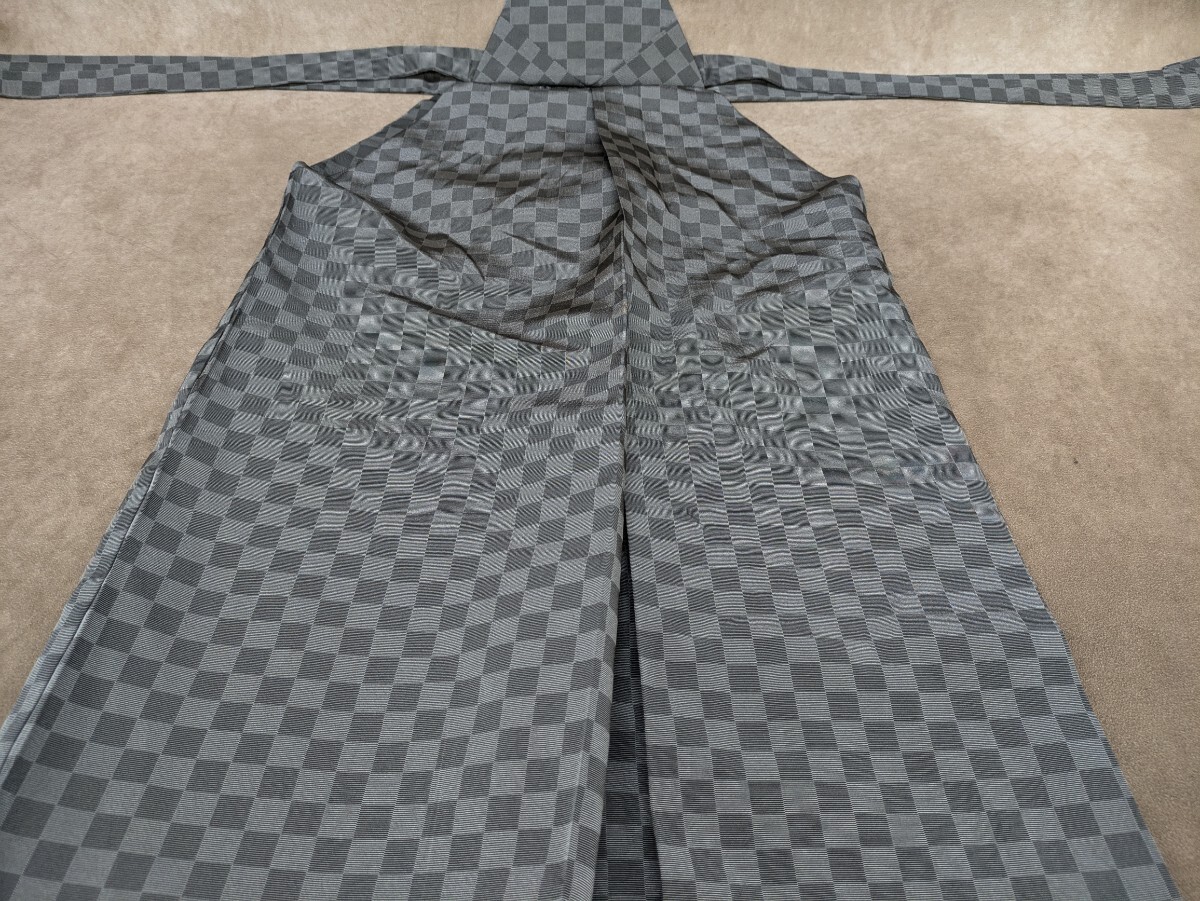袴 行灯袴 紐下80cm 市松模様 グレー色 ポリエステル100% 和装 和服 衣装 京都 おしゃれ リメイク 素材 材料 生地 奈良発