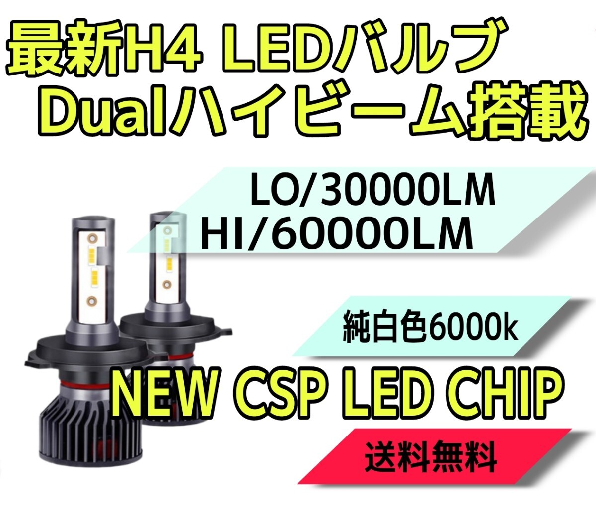 ★HIDより明るい!★最新CSPチップ搭載30000LM/60000LM超爆光★LEDヘッドライトH4Hi/Lo同時点灯 6000k 一台分(2個セット)車検対応12V