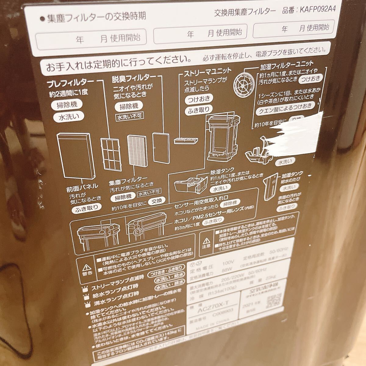 Product name: 動作OK◆DAIKIN /ダイキン ACZ70X-T 空気清浄機 加湿空気清浄機 2021年製 うるるとさらら/プレミアムモデル 除湿 加湿◆P-I