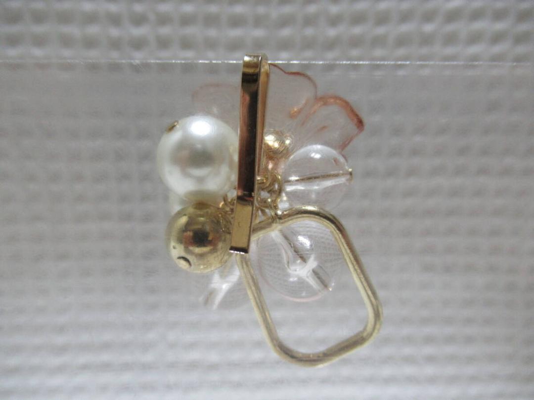 Product name: クリア系ライトブラウン色の花型 丸玉 パール ゴールドの角型付き ゴールドポニーフック