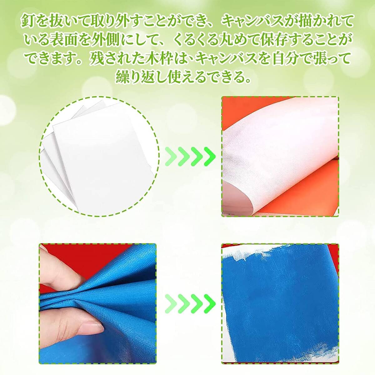 丈夫&変形しにくい:ホッチキスでキャンバス生地をとじていた、卯構造ので、絵具の固着性にも優れています。画布をしっかりしている。丈夫で変形しにくい。キャンバス生地が動きにくく、直接にイーゼルに載せれば、早速に絵画できます。