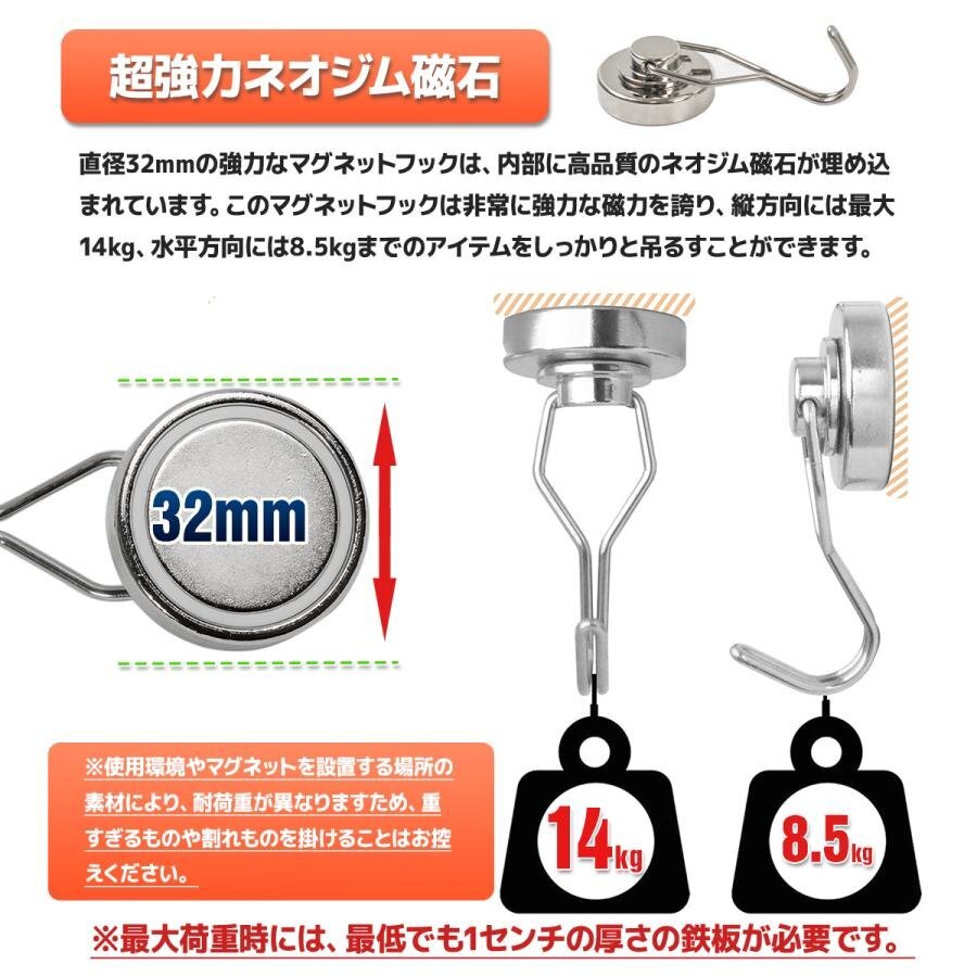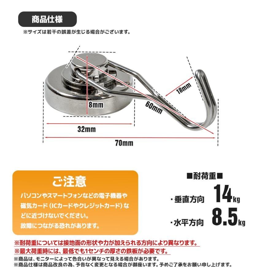 Product name: 【クリックポスト】フックタイプ 磁石 メガリング 超強力マグネット 32mm 水平耐荷重8.5kg/ キッチン 洗面所 壁掛 収納に ●送料無料