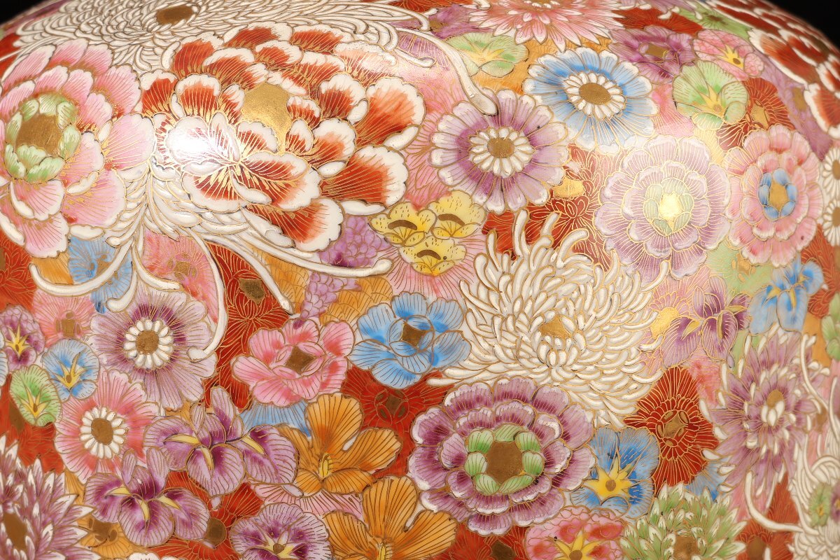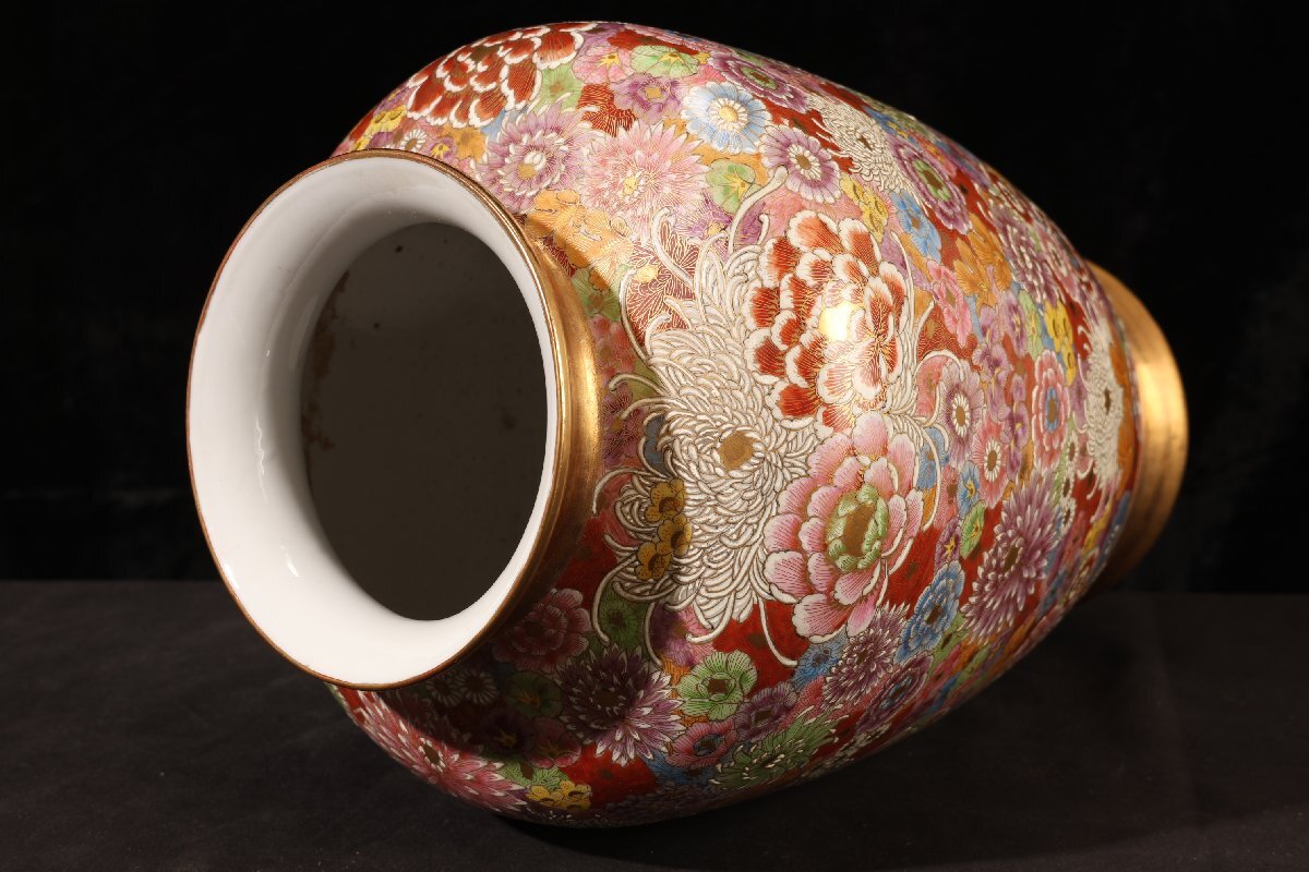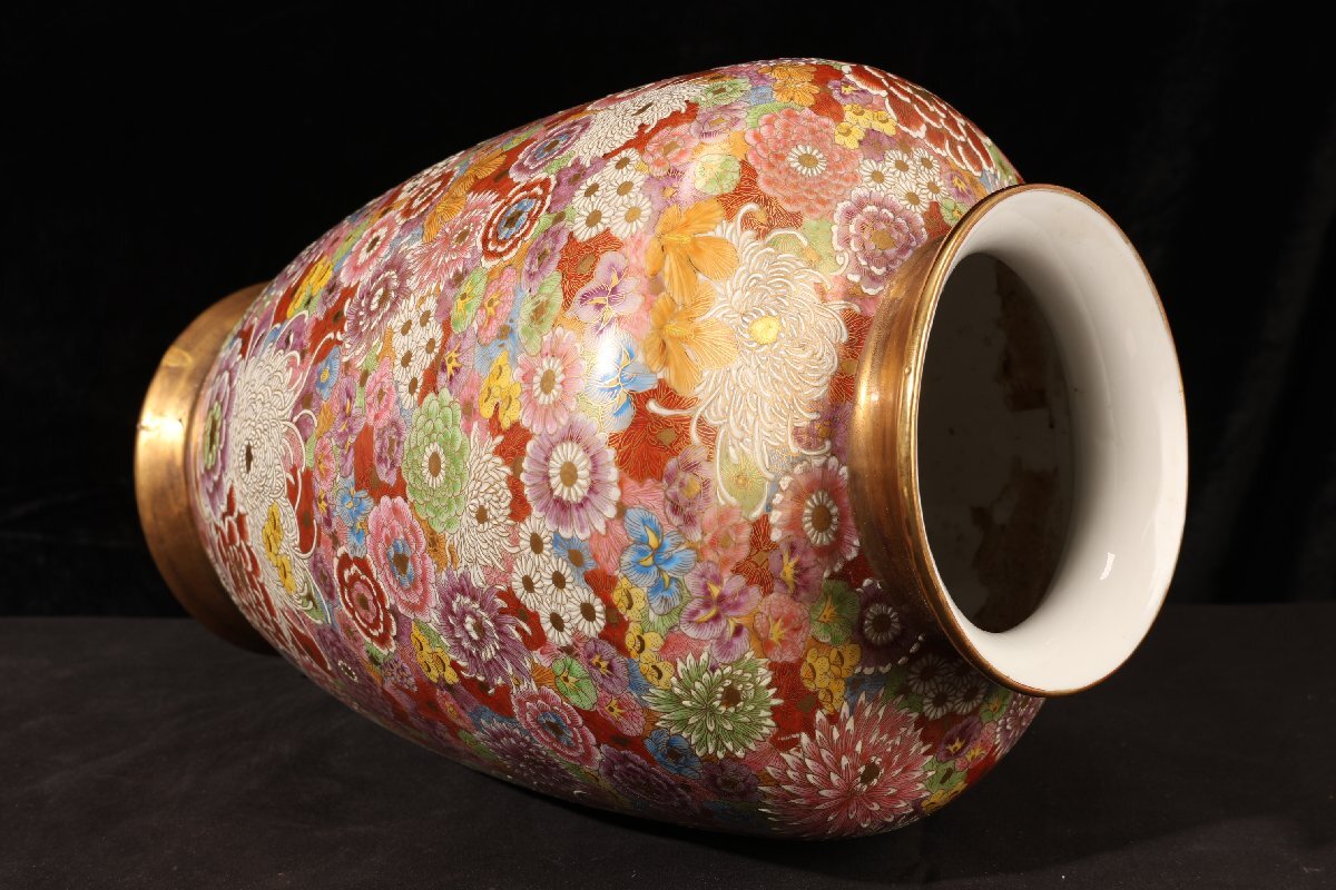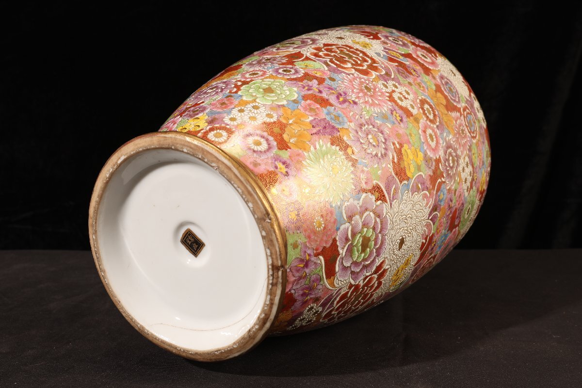 Product name: 【珍品堂】1円から L56-V08 薩摩焼 錦生作 色絵金彩 百花詰 花瓶 唐草花紋 飾壺 時代物 古美術 骨董品