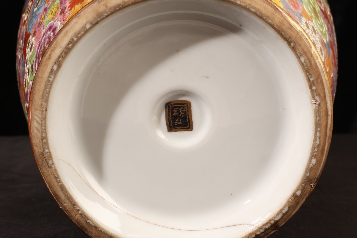【珍品堂】1円から L56-V08 薩摩焼 錦生作 色絵金彩 百花詰 花瓶 唐草花紋 飾壺 時代物 古美術 骨董品