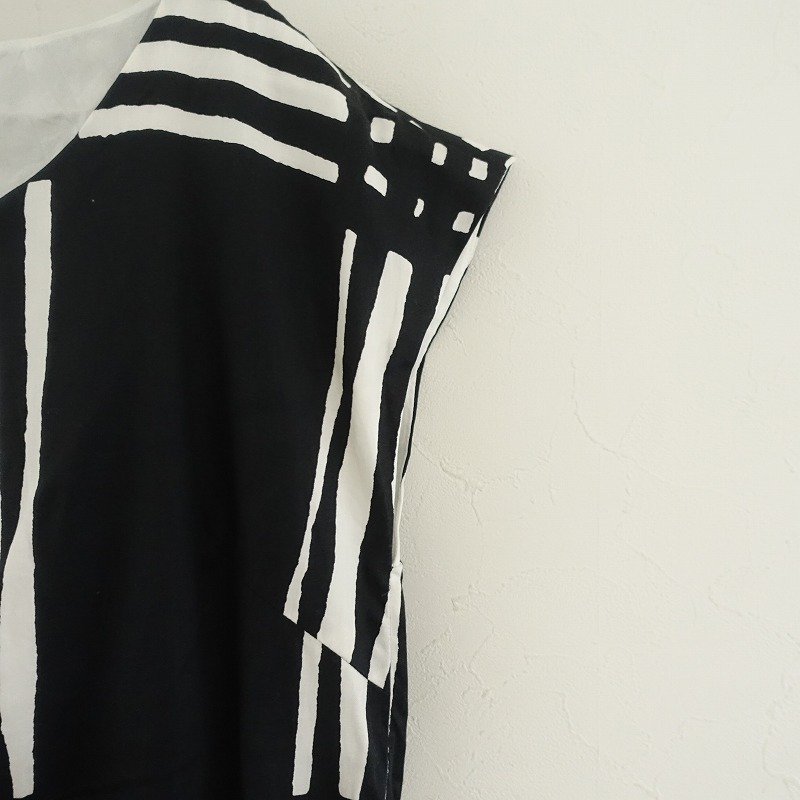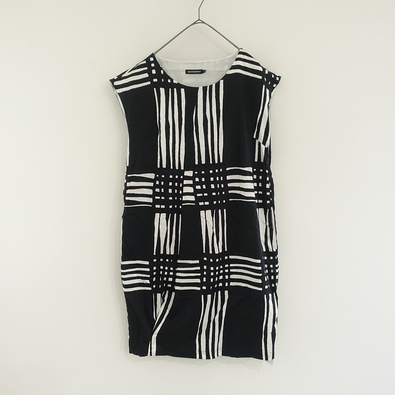 Product name: マリメッコ marimekko *フレンチスリーブワンピース*34プルオーバー総柄コットン混ブラック×ホワイト薄手(4-2506-54)【81G52】
